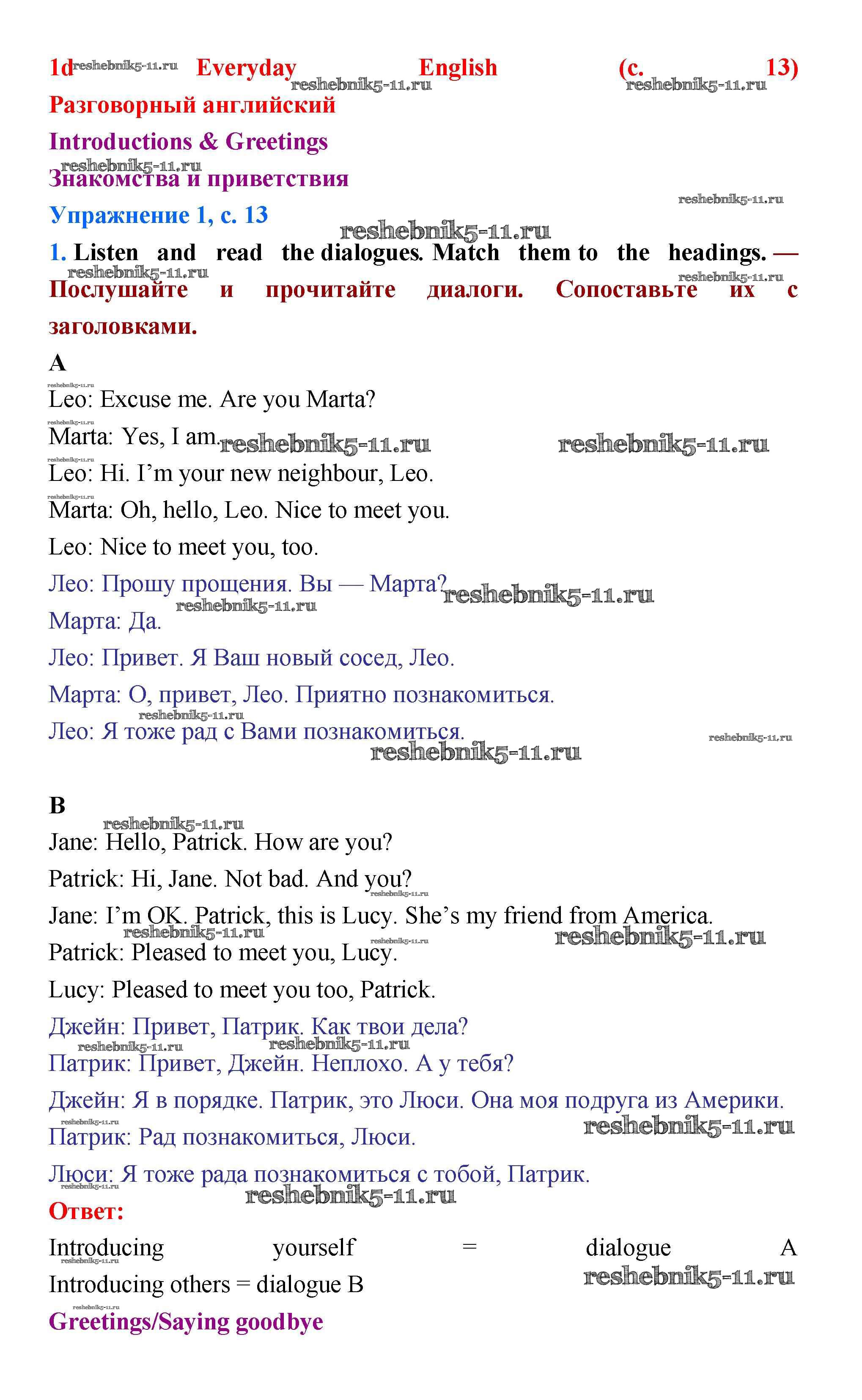 Готовая домашняя работа с ответами по Английскому языку за 5 класс Баранова, Эванс, Дули, Копылова, Мильруд Учебник Starlight Углубленный уровень Просвещение 2015 - Module 1. People around the world стр.13