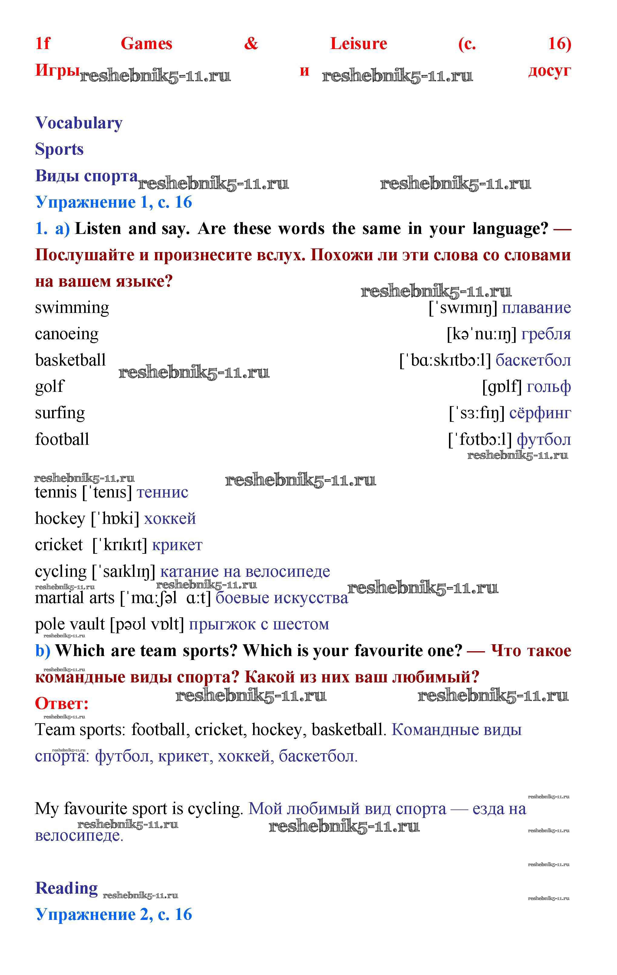 Английский язык за 5 класс Баранова Учебник Starlight Углубленный уровень Просвещение module 1 стр.16