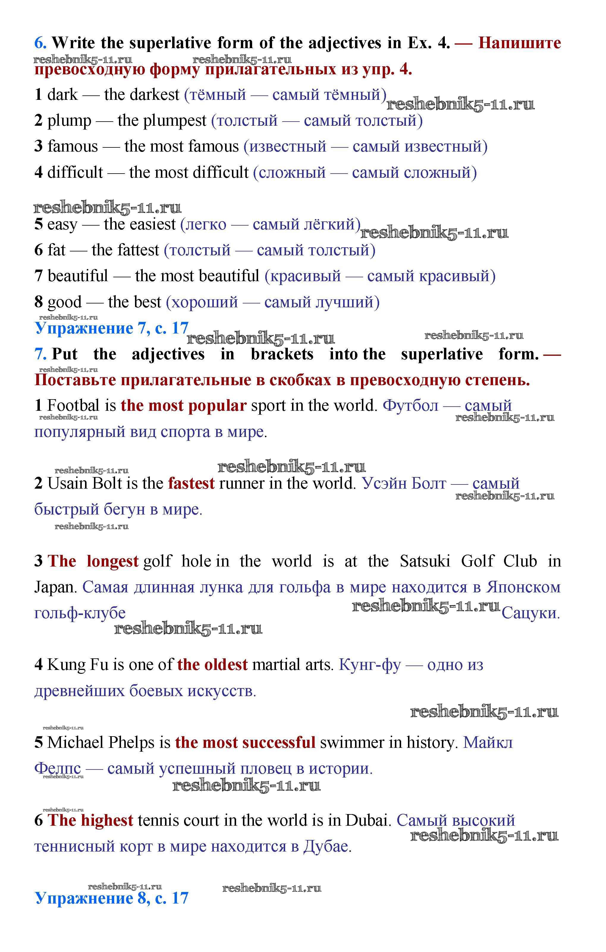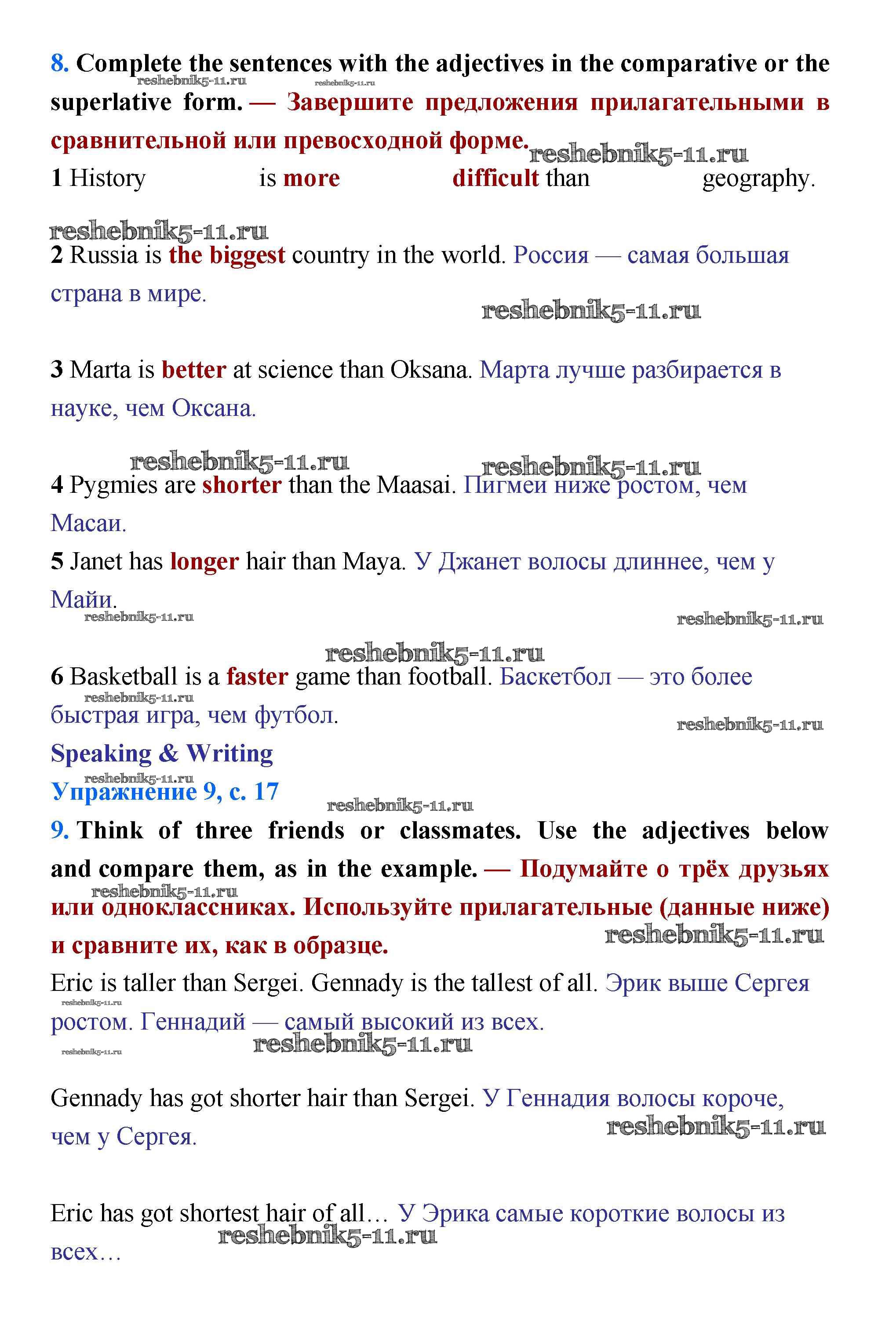 Готовая домашняя работа с ответами по Английскому языку за 5 класс Баранова, Эванс, Дули, Копылова, Мильруд Учебник Starlight Углубленный уровень Просвещение 2015 - Module 1. People around the world стр.17