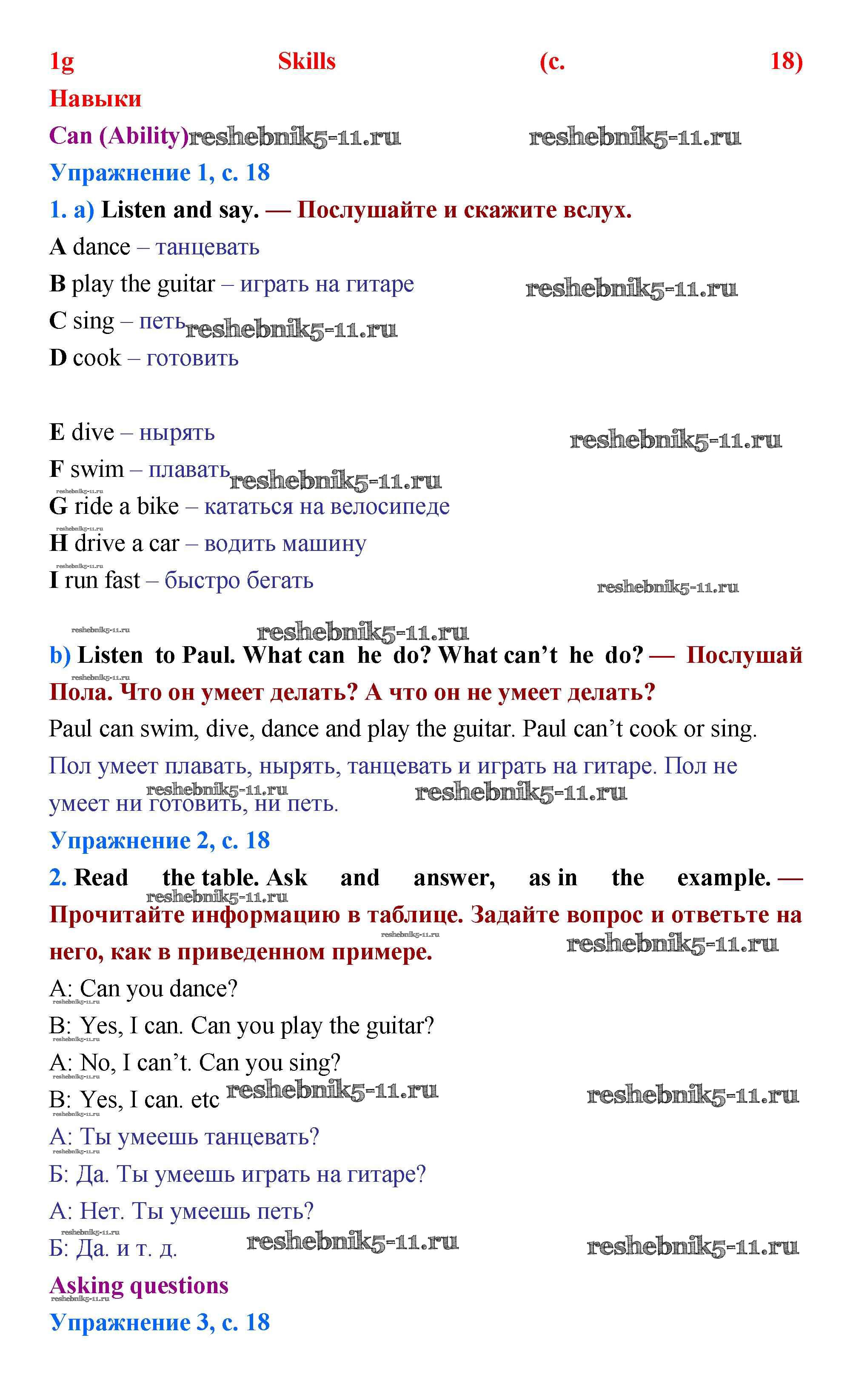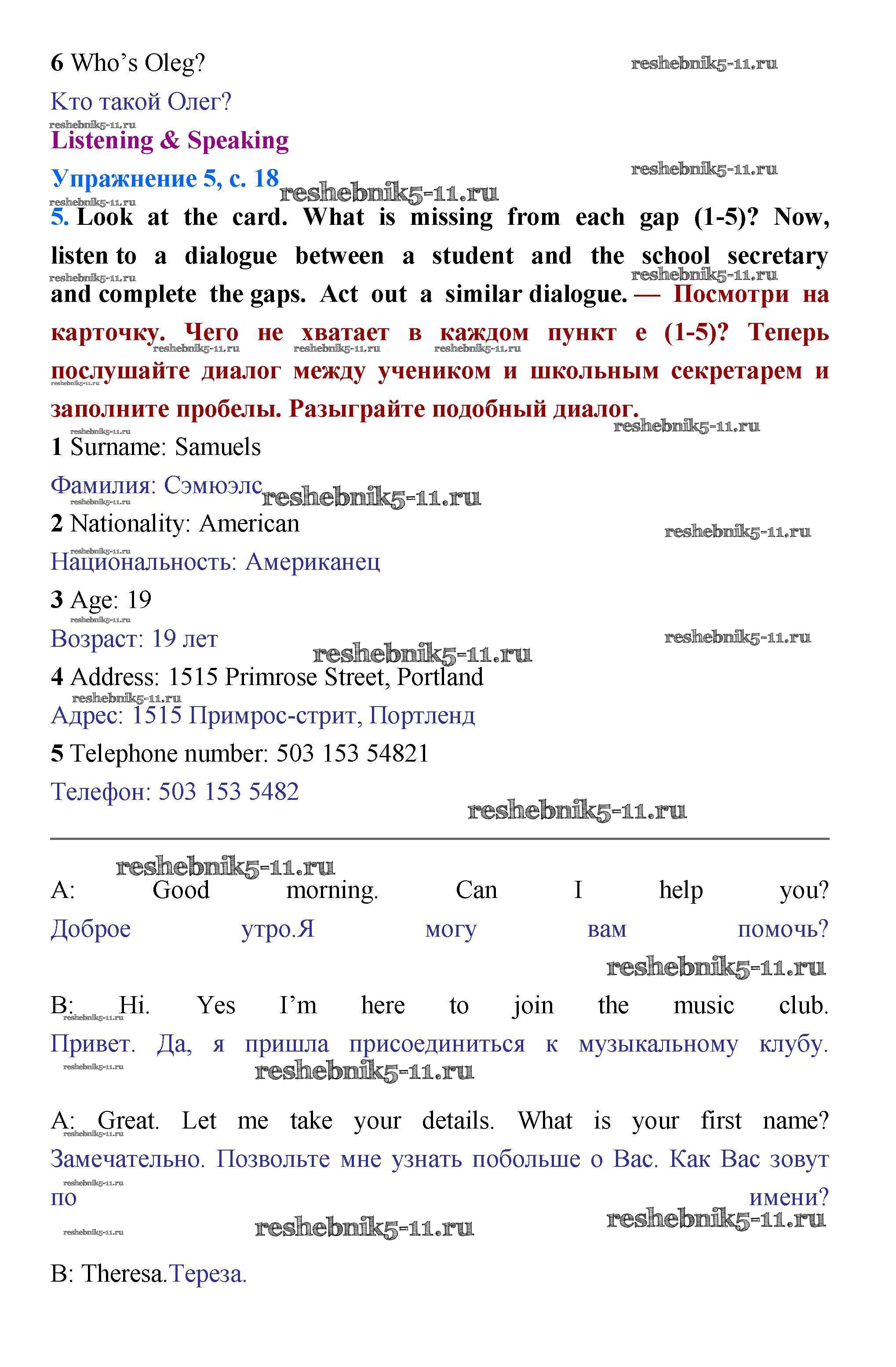Готовая домашняя работа с ответами по Английскому языку за 5 класс Баранова, Эванс, Дули, Копылова, Мильруд Учебник Starlight Углубленный уровень Просвещение 2015 - Module 1. People around the world стр.18