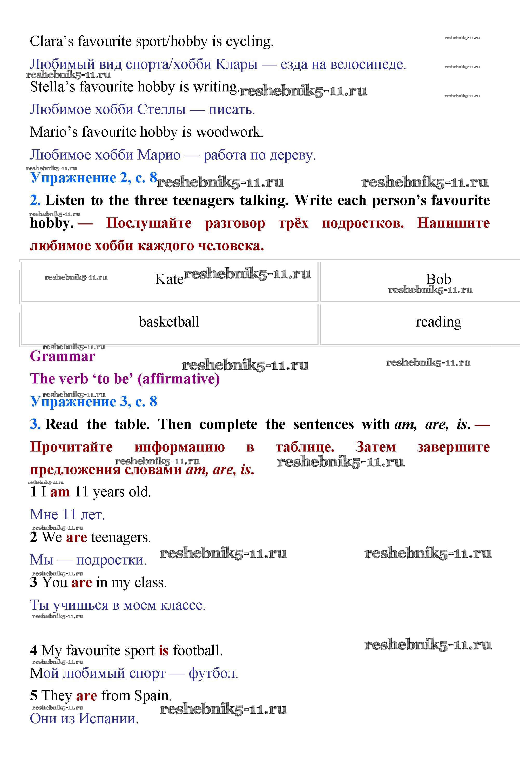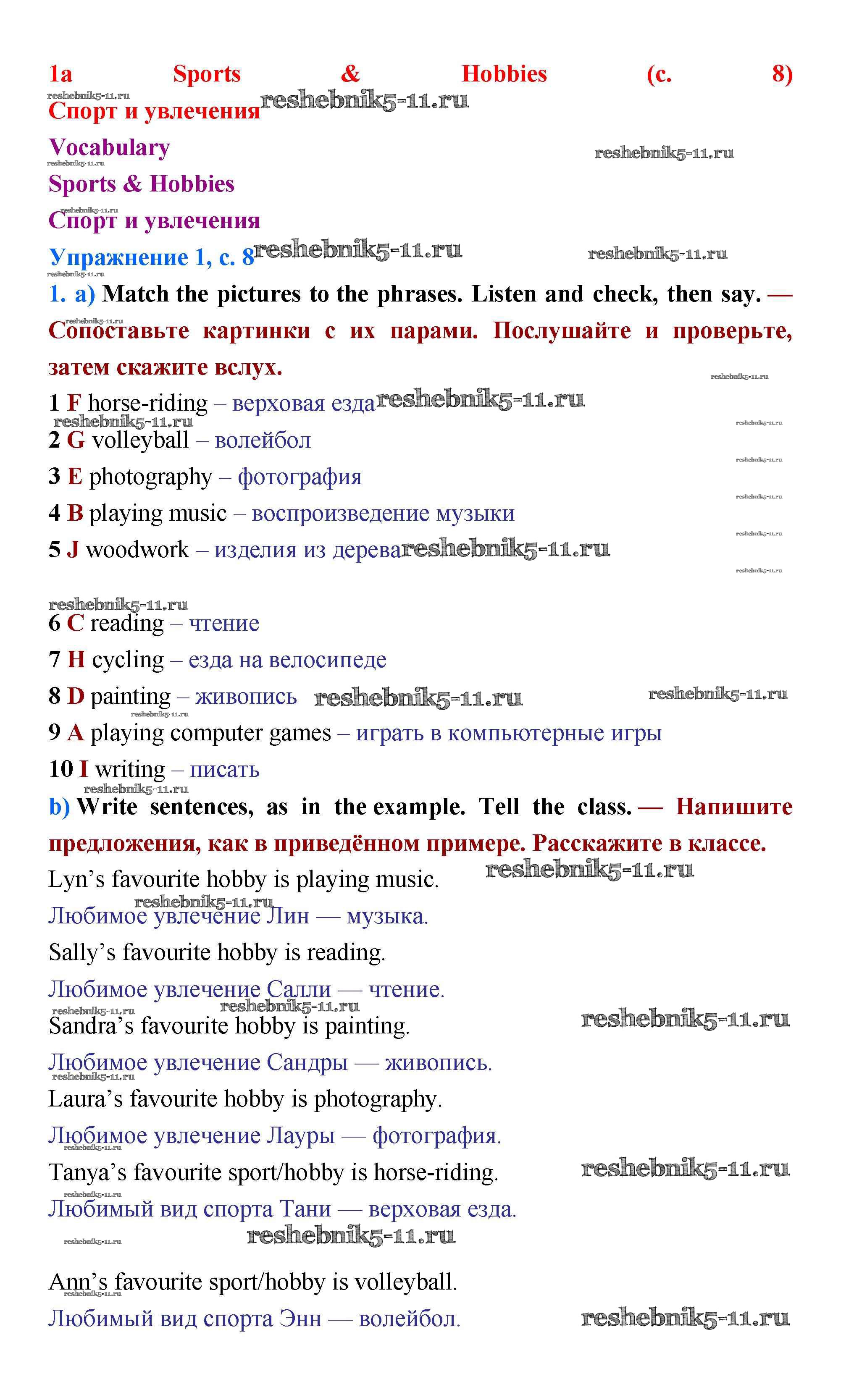 Готовая домашняя работа с ответами по Английскому языку за 5 класс Баранова, Эванс, Дули, Копылова, Мильруд Учебник Starlight Углубленный уровень Просвещение 2015 - Module 1. People around the world стр.8