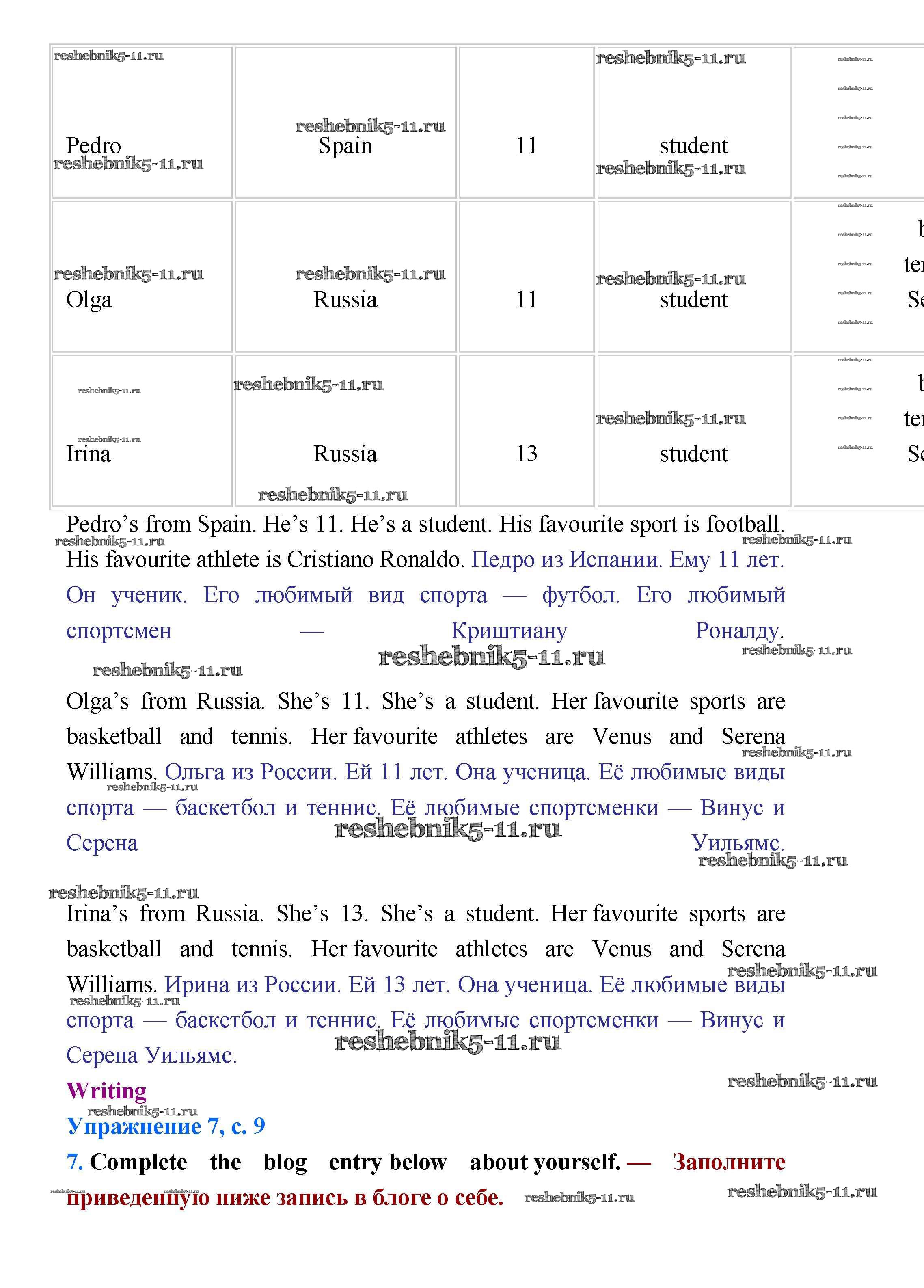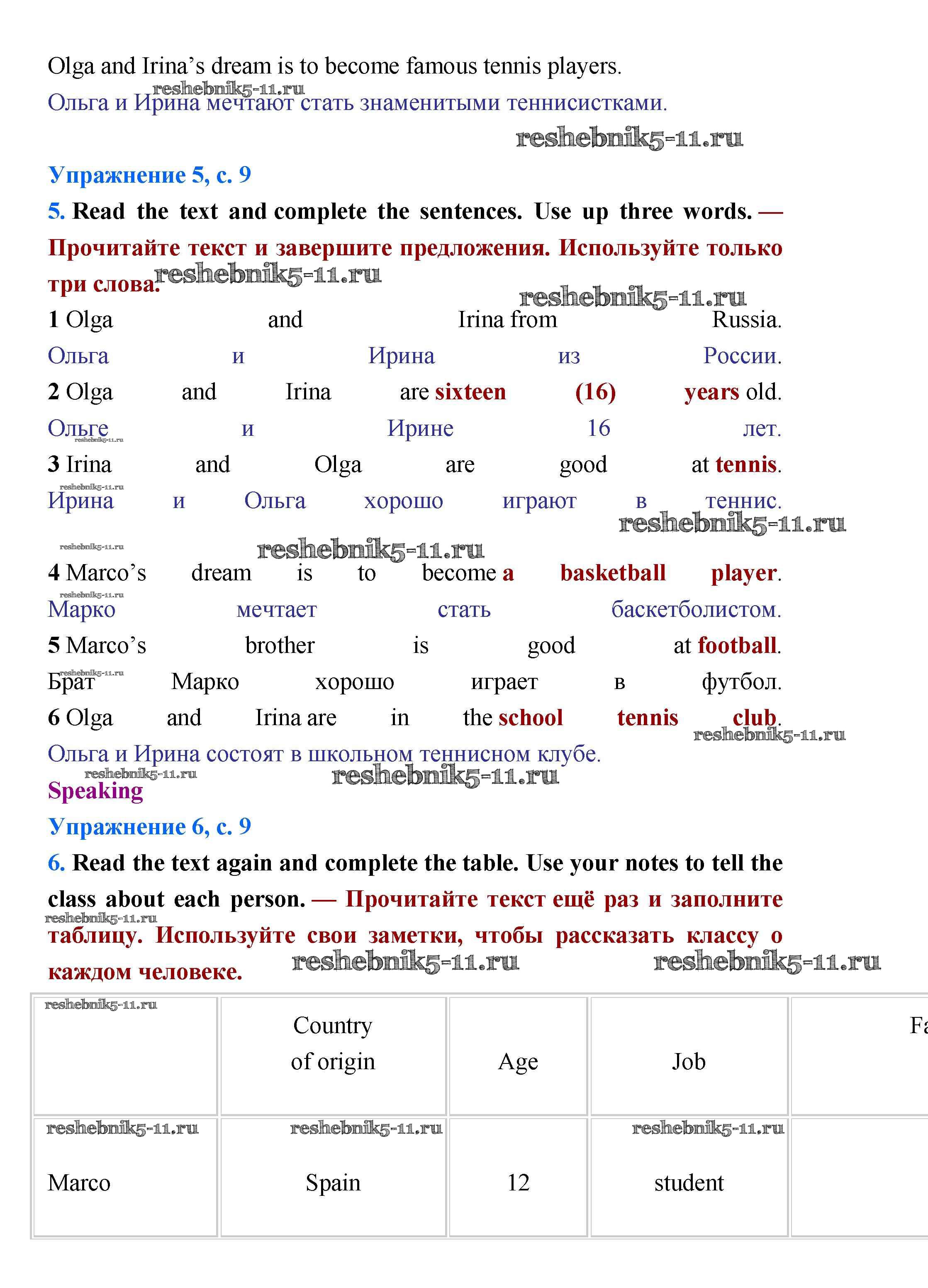 Готовая домашняя работа с ответами по Английскому языку за 5 класс Баранова, Эванс, Дули, Копылова, Мильруд Учебник Starlight Углубленный уровень Просвещение 2015 - Module 1. People around the world стр.9