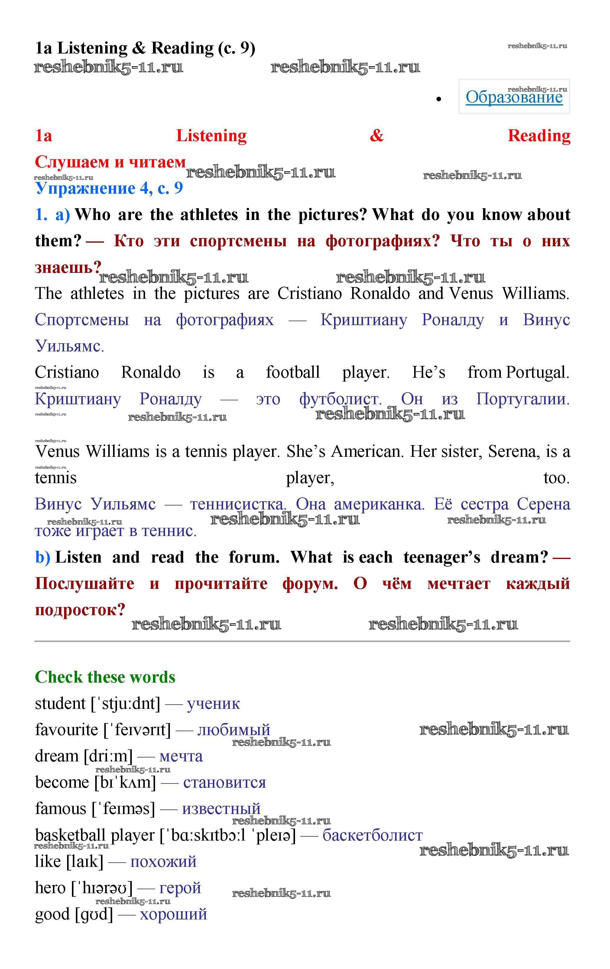 Английский язык за 5 класс Баранова Учебник Starlight Углубленный уровень Просвещение module 1 стр.9