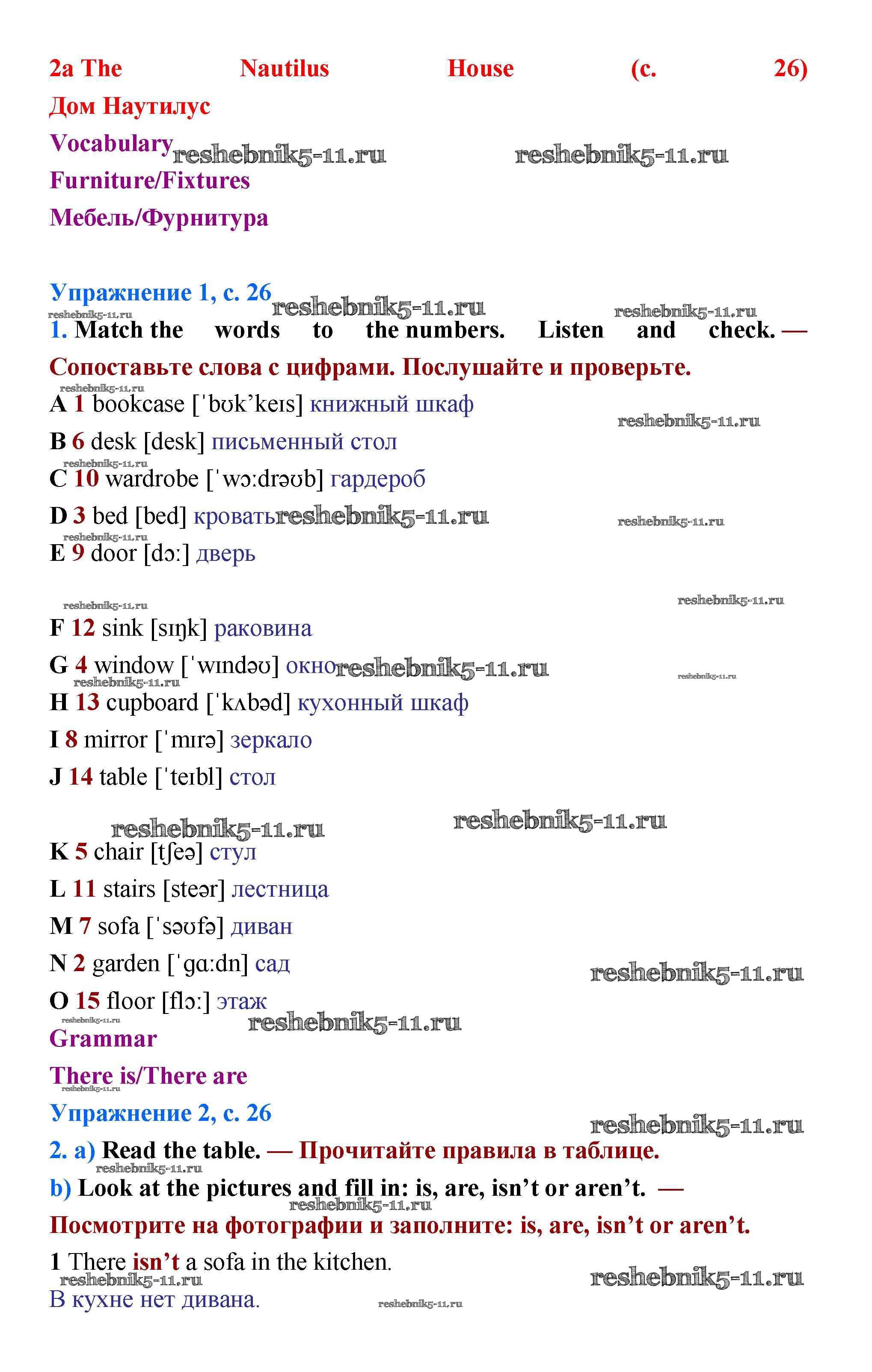 Готовая домашняя работа с ответами по Английскому языку за 5 класс Баранова, Эванс, Дули, Копылова, Мильруд Учебник Starlight Углубленный уровень Просвещение 2015 - Module 2. East, West, Home's Best стр.26