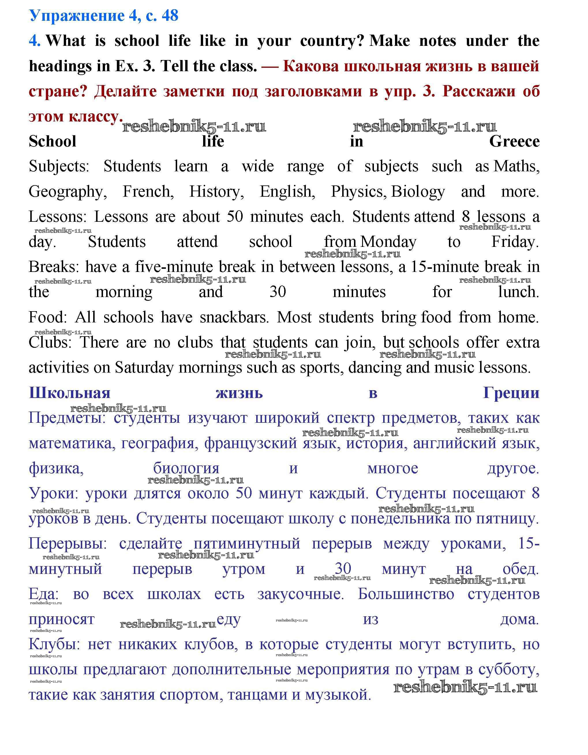 Готовая домашняя работа с ответами по Английскому языку за 5 класс Баранова, Эванс, Дули, Копылова, Мильруд Учебник Starlight Углубленный уровень Просвещение 2015 - Module 3. Day after day стр.48
