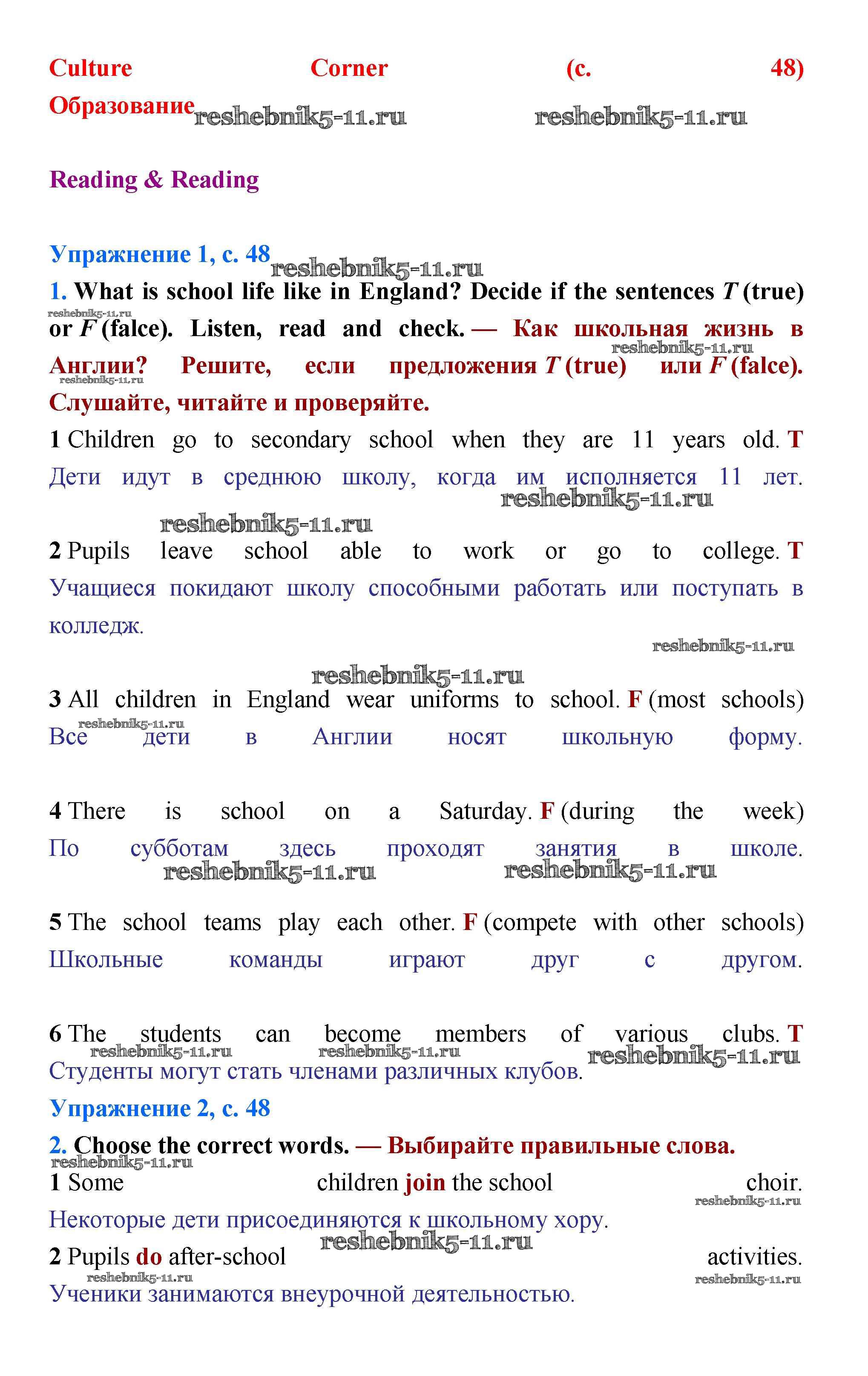 Английский язык за 5 класс Баранова Учебник Starlight Углубленный уровень Просвещение module 3 стр.48