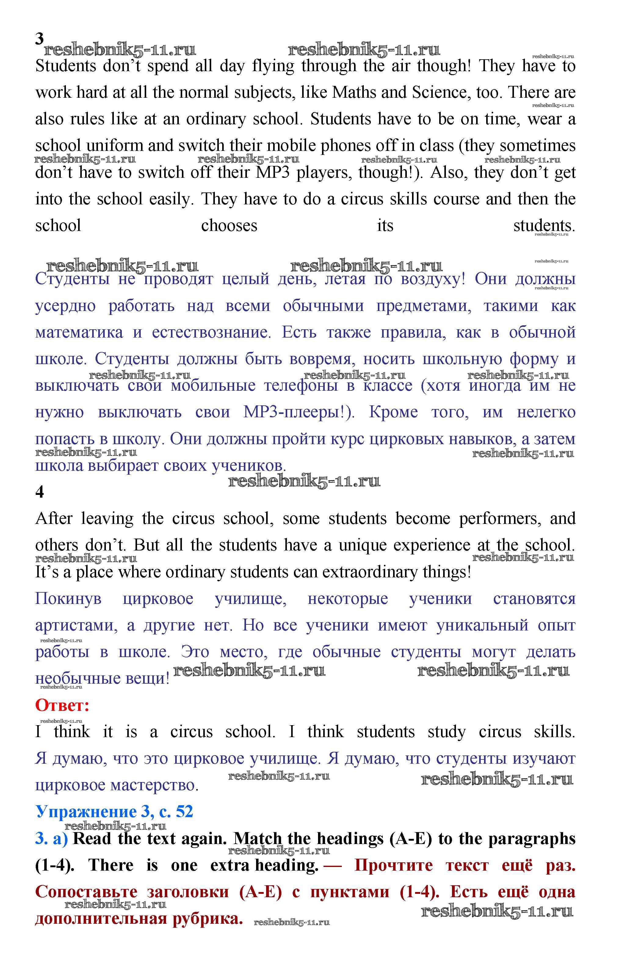 Готовая домашняя работа с ответами по Английскому языку за 5 класс Баранова, Эванс, Дули, Копылова, Мильруд Учебник Starlight Углубленный уровень Просвещение 2015 - Module 3. Day after day стр.52