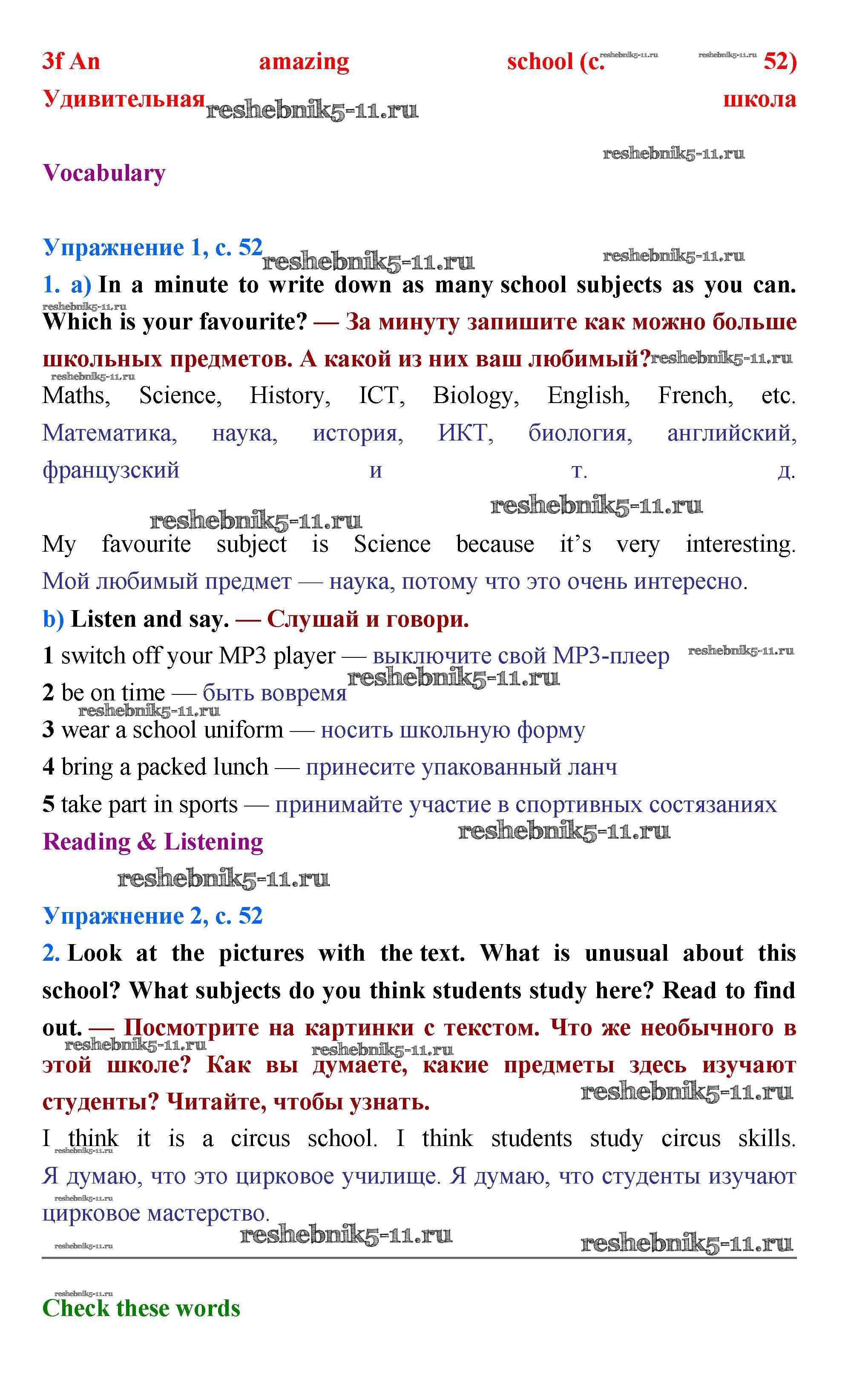 Английский язык за 5 класс Баранова Учебник Starlight Углубленный уровень Просвещение module 3 стр.52