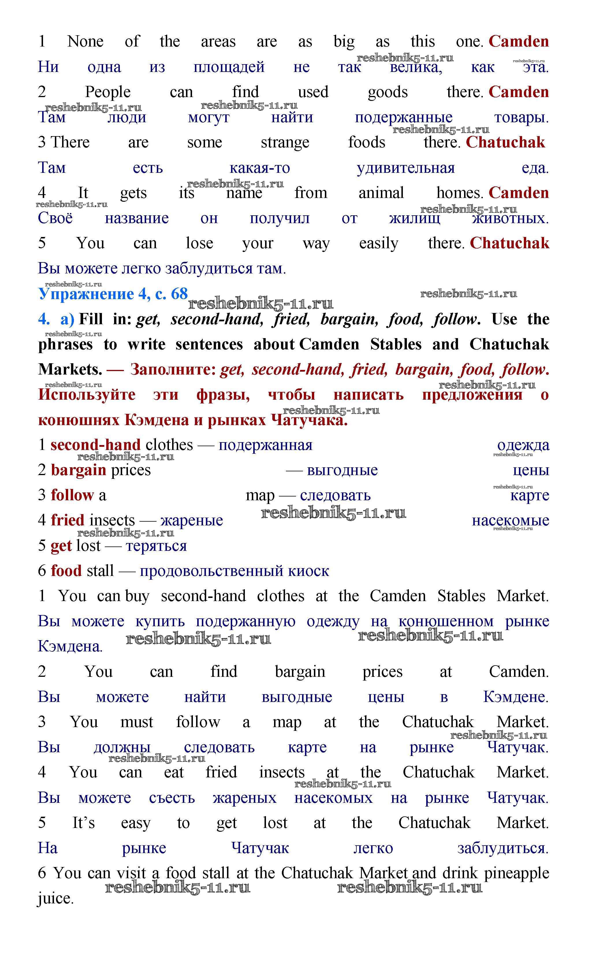 Готовая домашняя работа с ответами по Английскому языку за 5 класс Баранова, Эванс, Дули, Копылова, Мильруд Учебник Starlight Углубленный уровень Просвещение 2015 - Module 4. Come rain or shine стр.68