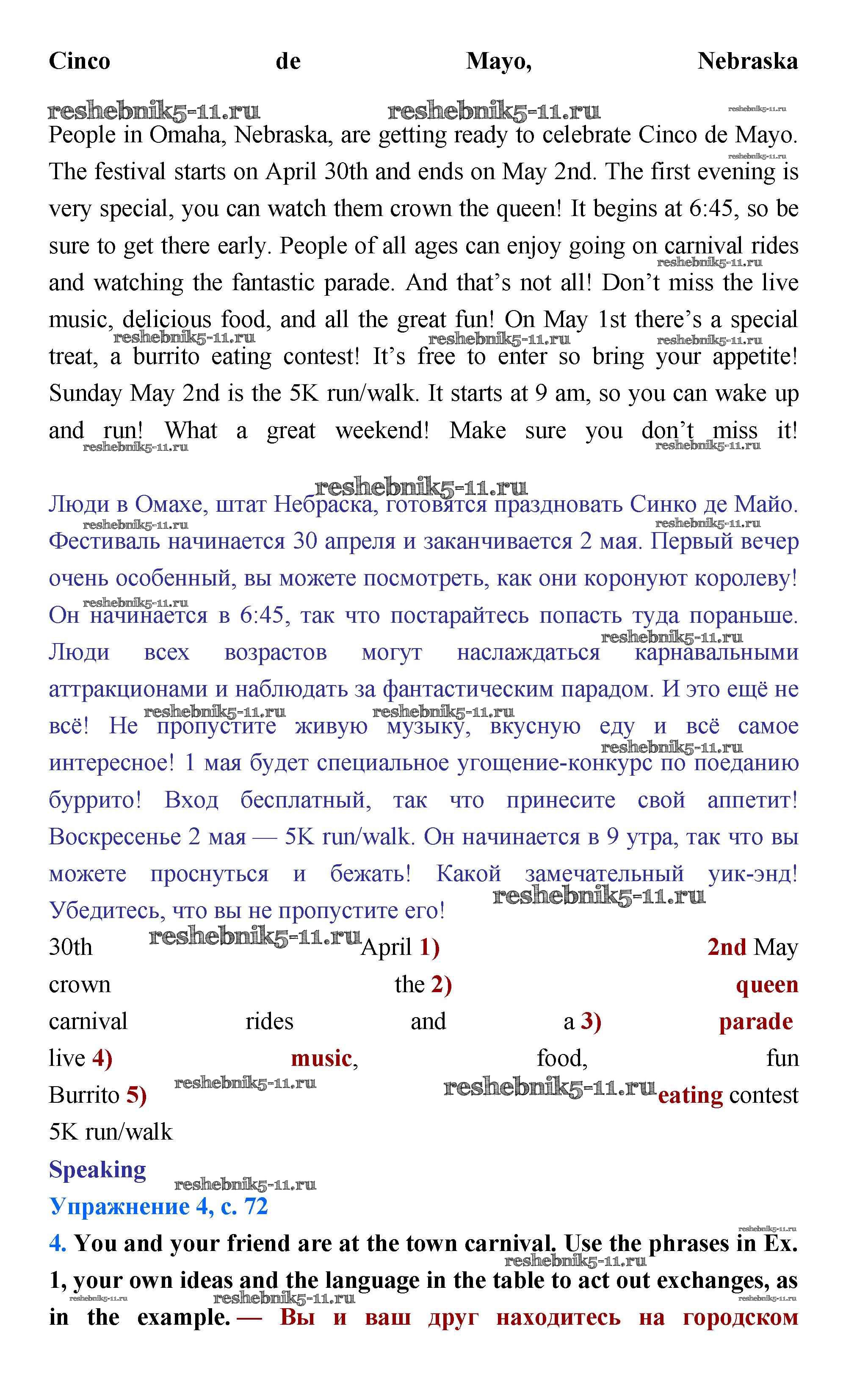 Английский язык за 5 класс Баранова Учебник Starlight Углубленный уровень Просвещение module 4 стр.72