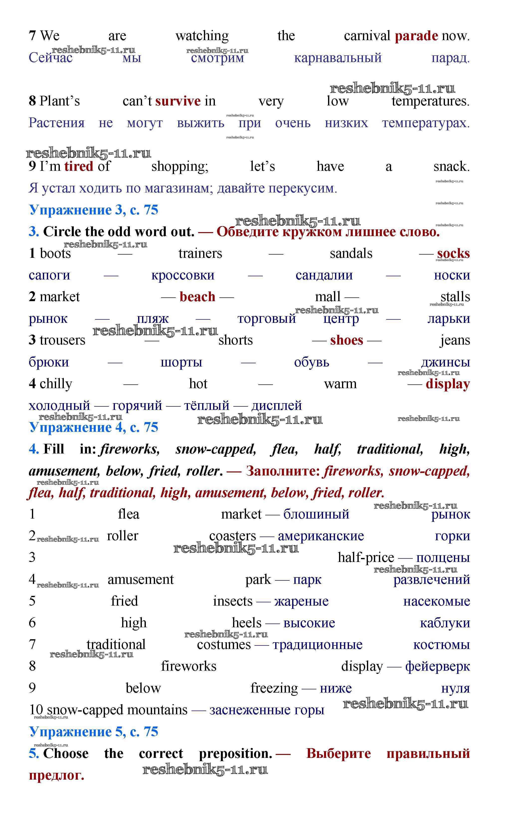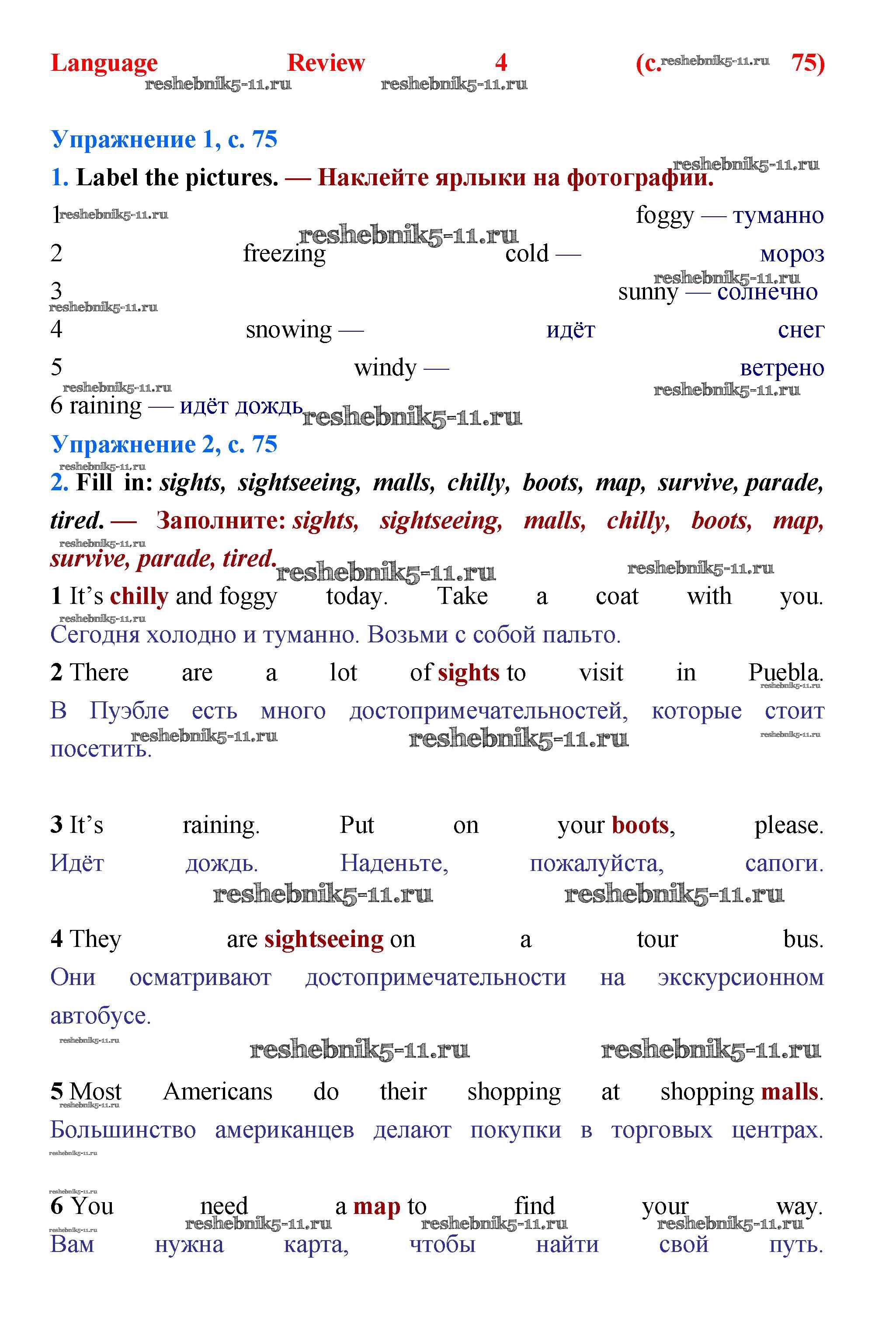Готовая домашняя работа с ответами по Английскому языку за 5 класс Баранова, Эванс, Дули, Копылова, Мильруд Учебник Starlight Углубленный уровень Просвещение 2015 - Module 4. Come rain or shine стр.75