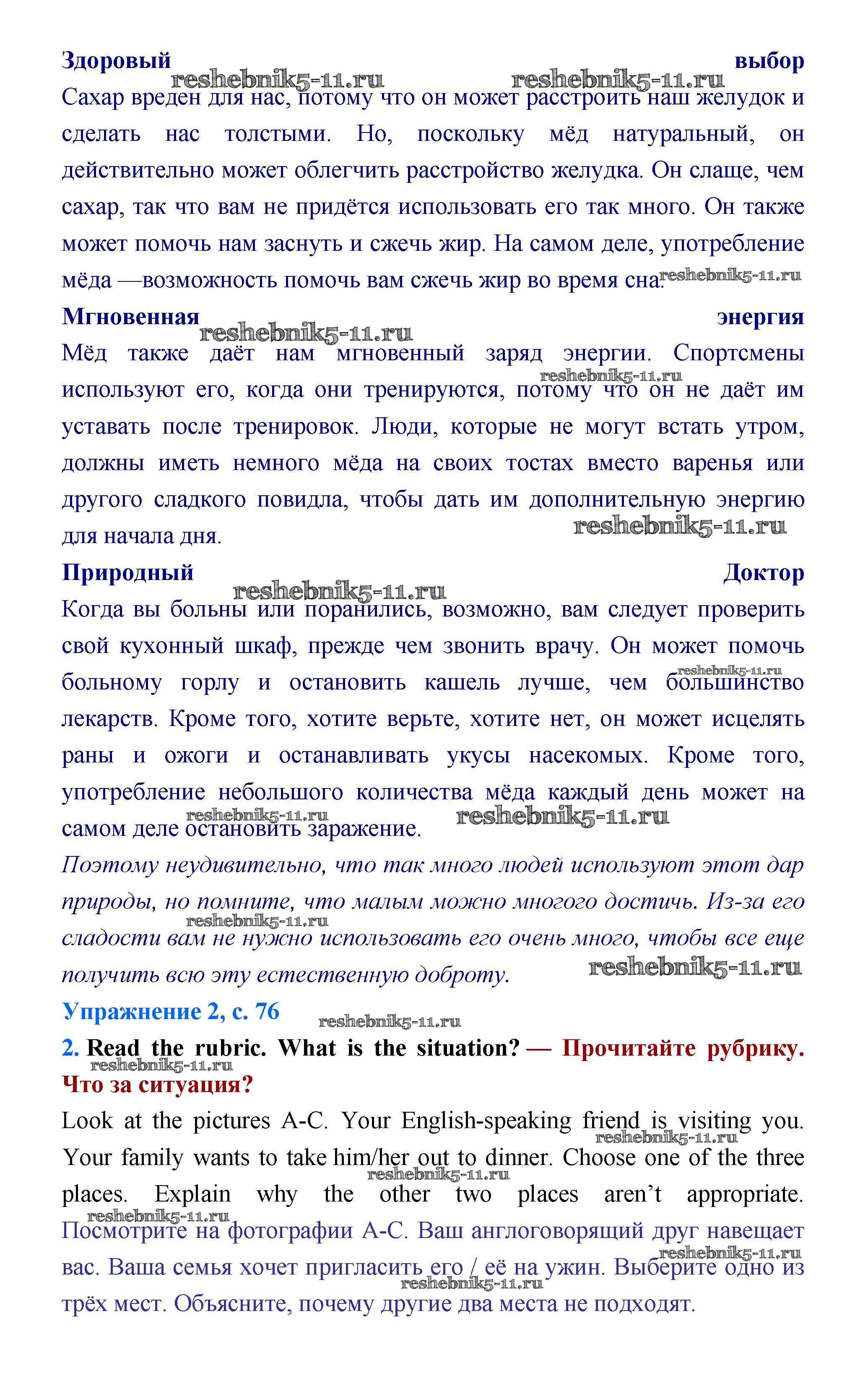 Английский язык за 5 класс Баранова Учебник Starlight Углубленный уровень Просвещение module 4 стр.76