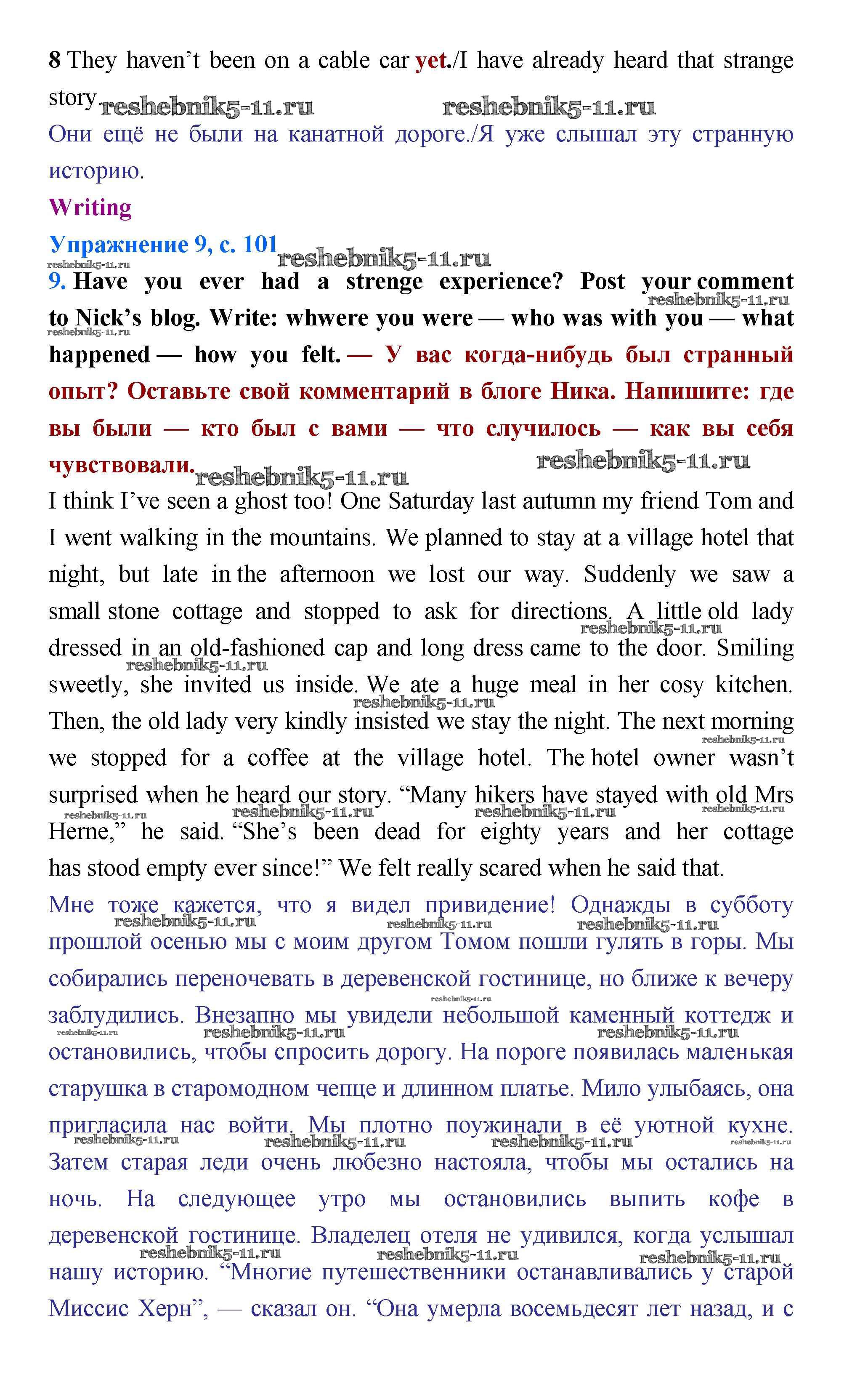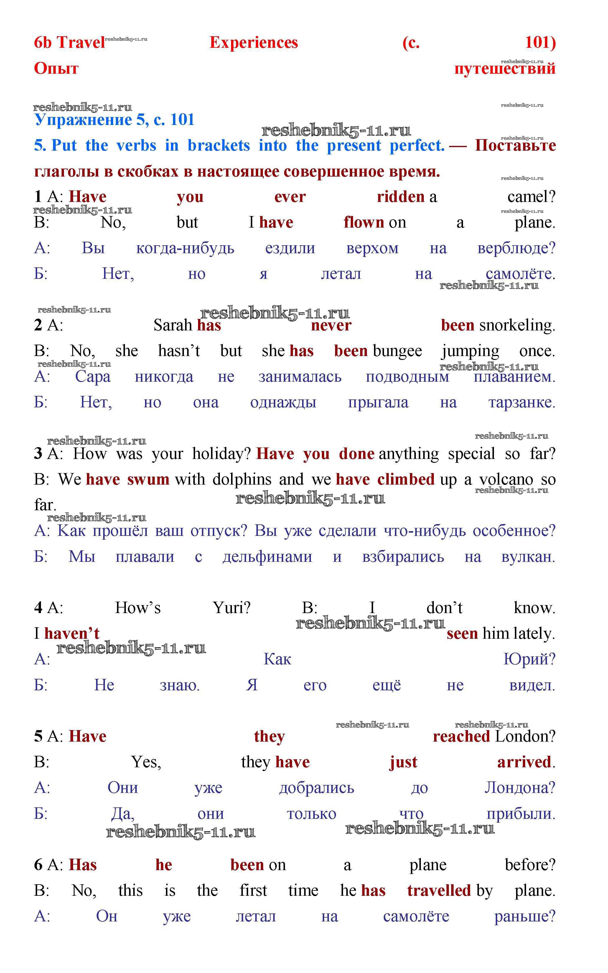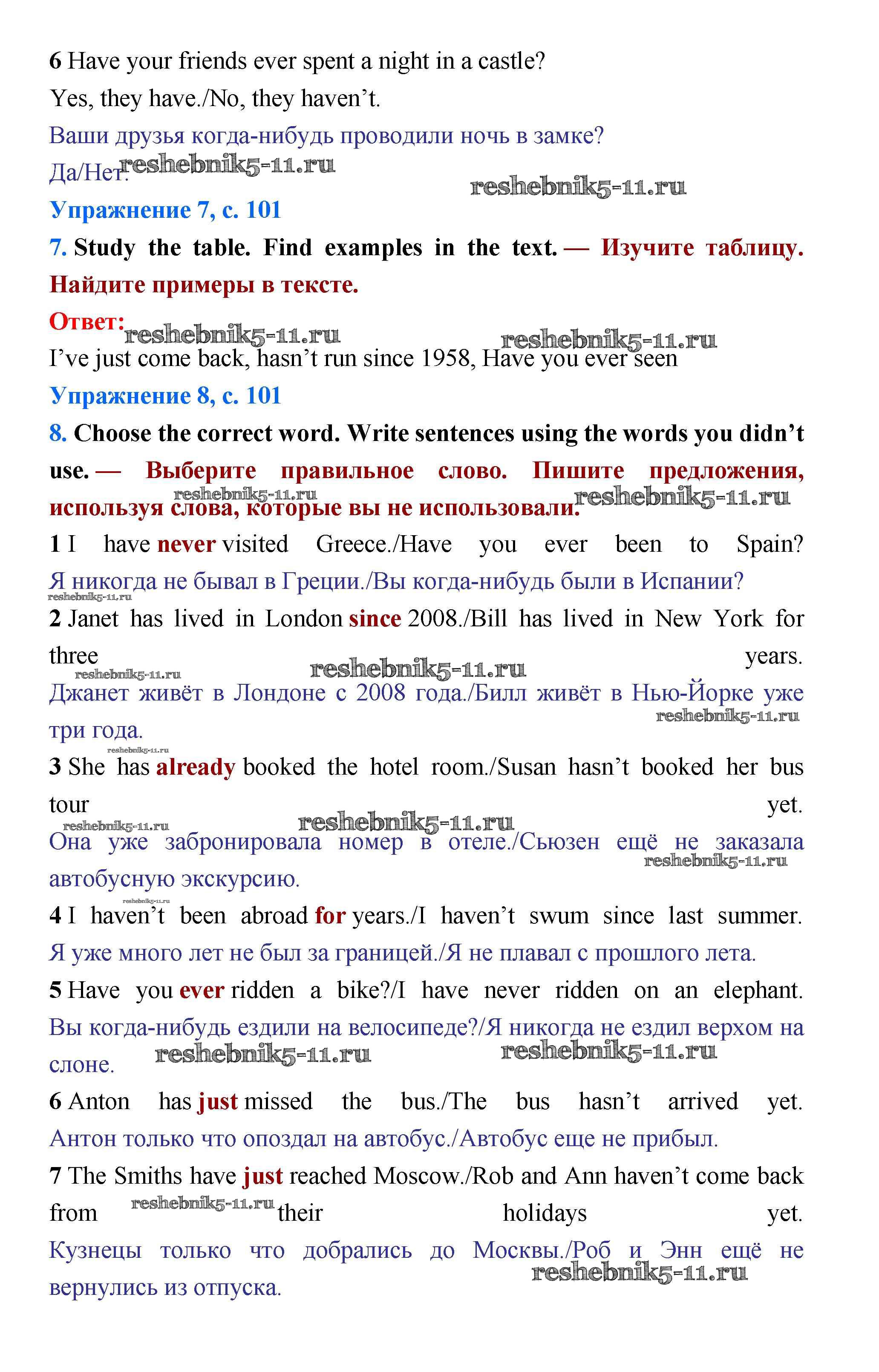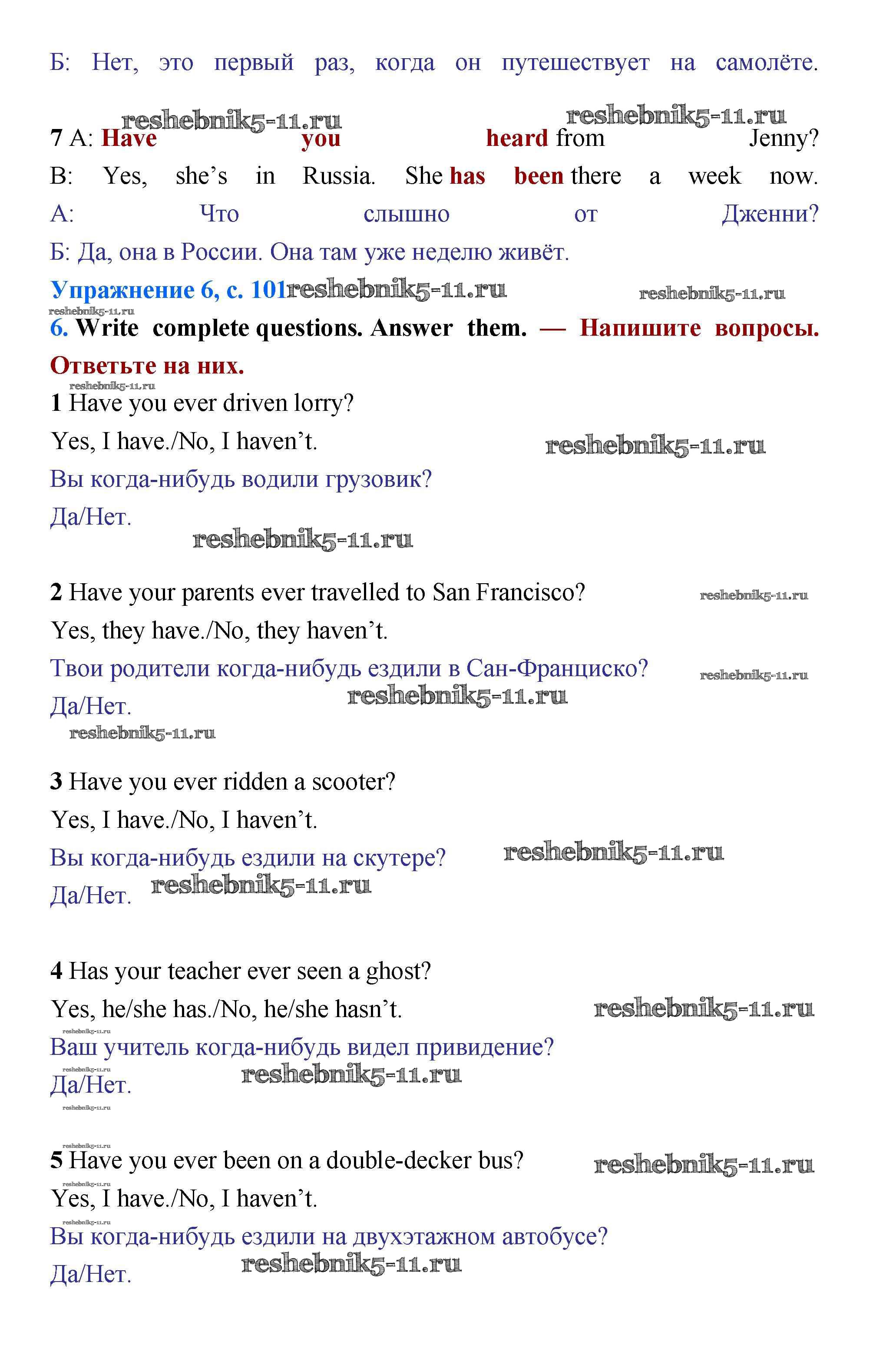 Готовая домашняя работа с ответами по Английскому языку за 5 класс Баранова, Эванс, Дули, Копылова, Мильруд Учебник Starlight Углубленный уровень Просвещение 2015 - Module 6. Have your ever...? стр.101