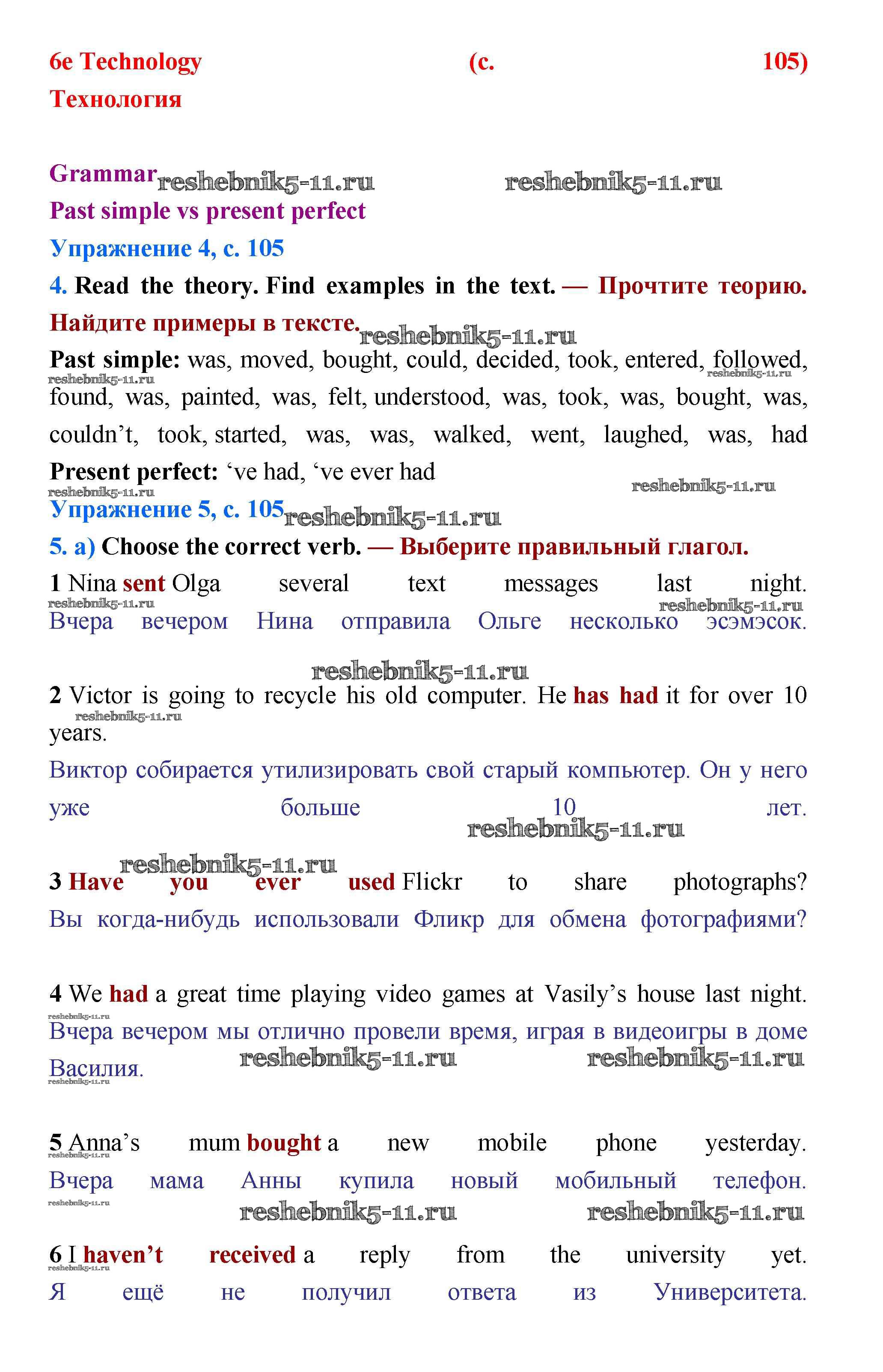 Английский язык за 5 класс Баранова Учебник Starlight Углубленный уровень Просвещение module 6 стр.105