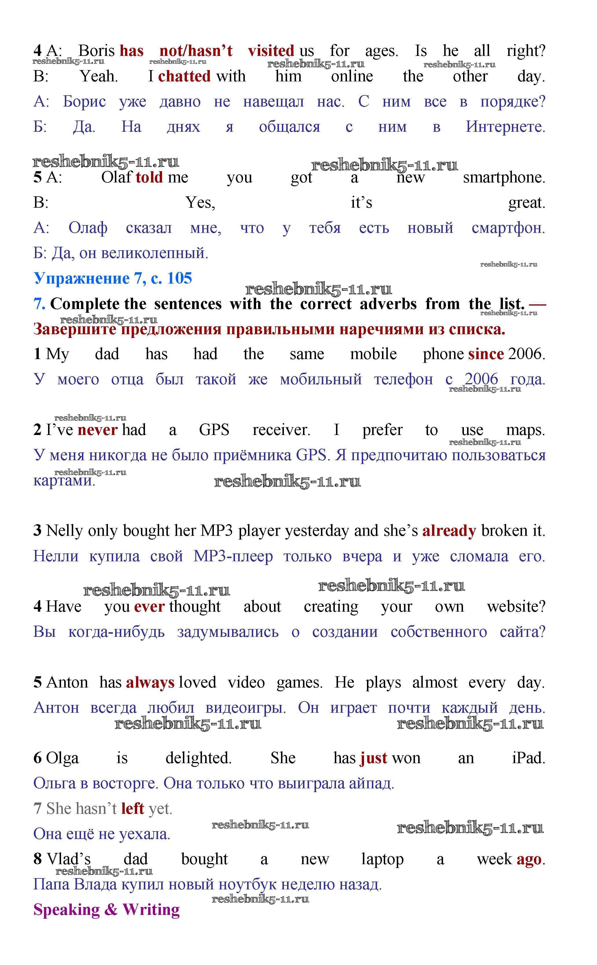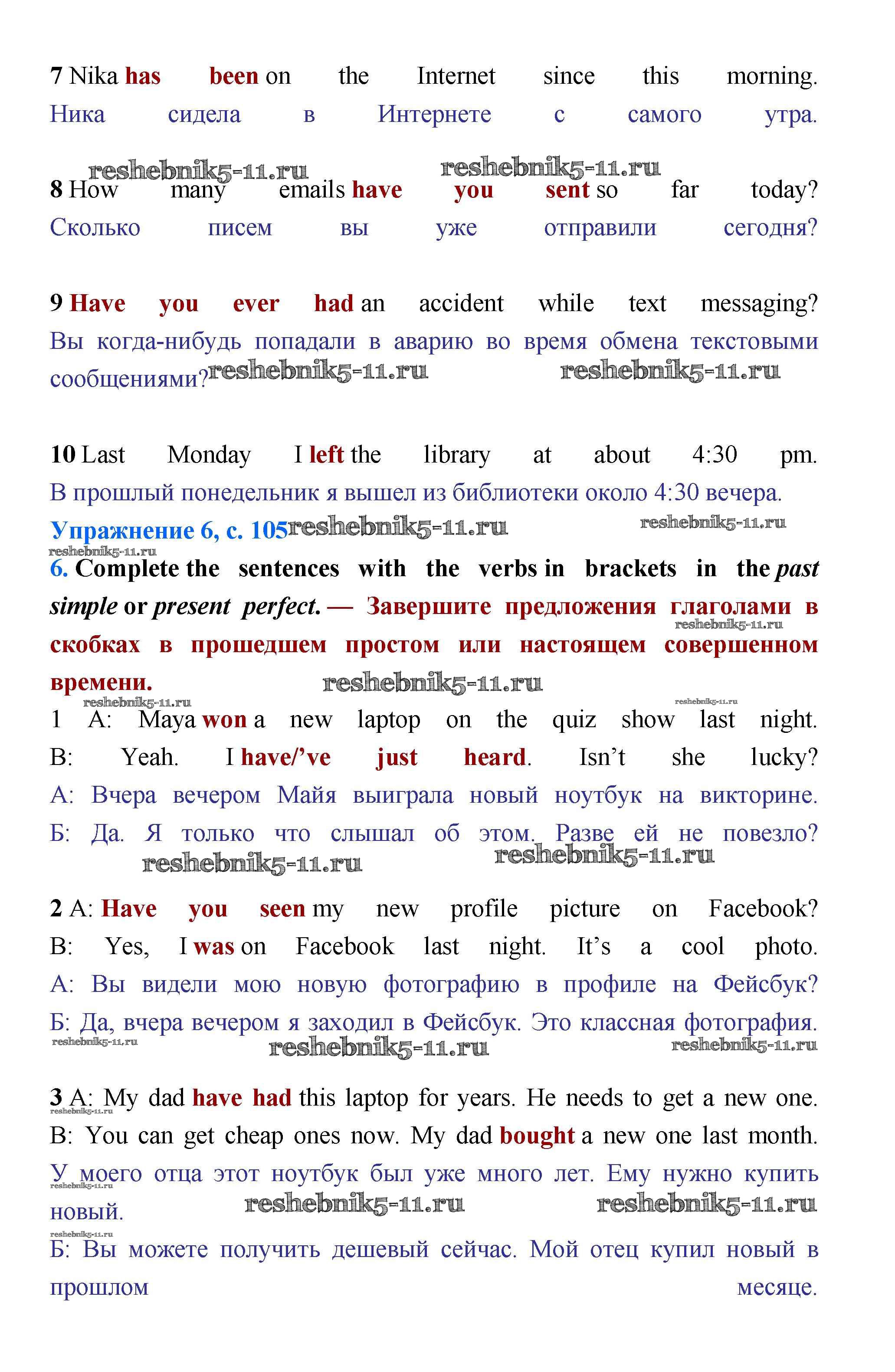 Готовая домашняя работа с ответами по Английскому языку за 5 класс Баранова, Эванс, Дули, Копылова, Мильруд Учебник Starlight Углубленный уровень Просвещение 2015 - Module 6. Have your ever...? стр.105
