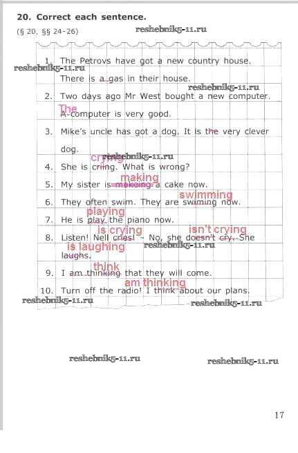 Готовая домашняя работа с ответами по Английскому языку за 5 класс Барашкова Сборник упражнений УМК Часть 1 Экзамен 2020 ФГОС - Lesson 1 стр. 17