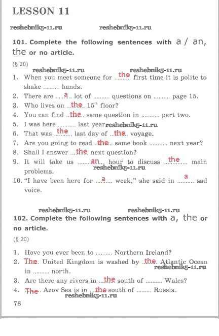 Готовая домашняя работа с ответами по Английскому языку за 5 класс Барашкова Сборник упражнений УМК Часть 1 Экзамен 2020 ФГОС - Lesson 11 стр. 78