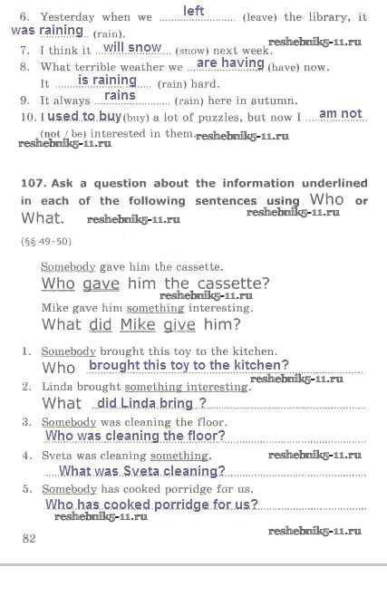 Готовая домашняя работа с ответами по Английскому языку за 5 класс Барашкова Сборник упражнений УМК Часть 1 Экзамен 2020 ФГОС - Lesson 11 стр. 82