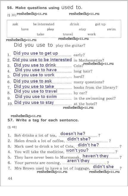 Готовая домашняя работа с ответами по Английскому языку за 5 класс Барашкова Сборник упражнений УМК Часть 1 Экзамен 2020 ФГОС - Lesson 6 стр. 44