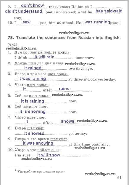 Готовая домашняя работа с ответами по Английскому языку за 5 класс Барашкова Сборник упражнений УМК Часть 1 Экзамен 2020 ФГОС - Lesson 8 стр. 61