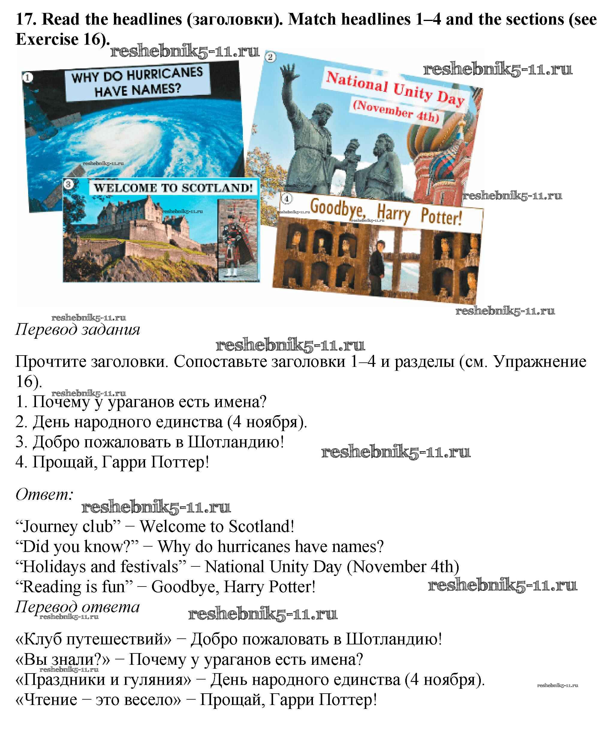 Готовая домашняя работа с ответами по Английскому языку за 5 класс Вербицкая, Эббс, Уорелл Учебник Forward Часть 1, 2 Вентана-граф 2016 ФГОС - Unit 1. Let’s make a magazine 17