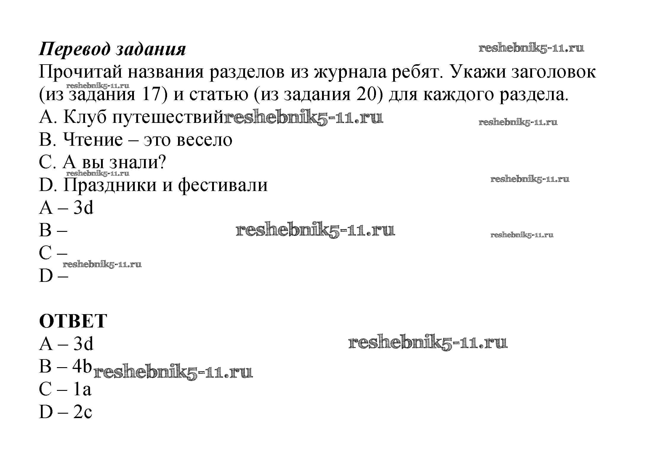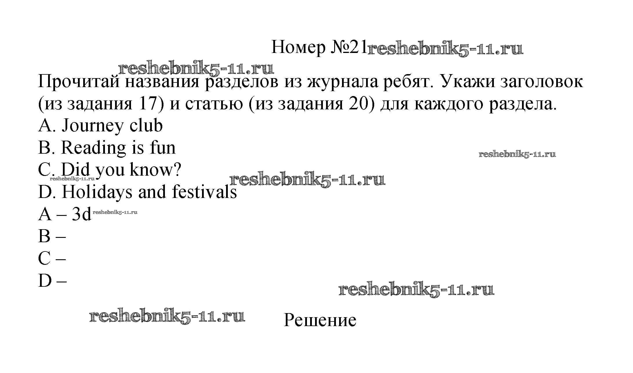 Готовая домашняя работа с ответами по Английскому языку за 5 класс Вербицкая, Эббс, Уорелл Учебник Forward Часть 1, 2 Вентана-граф 2016 ФГОС - Unit 1. Let’s make a magazine 21