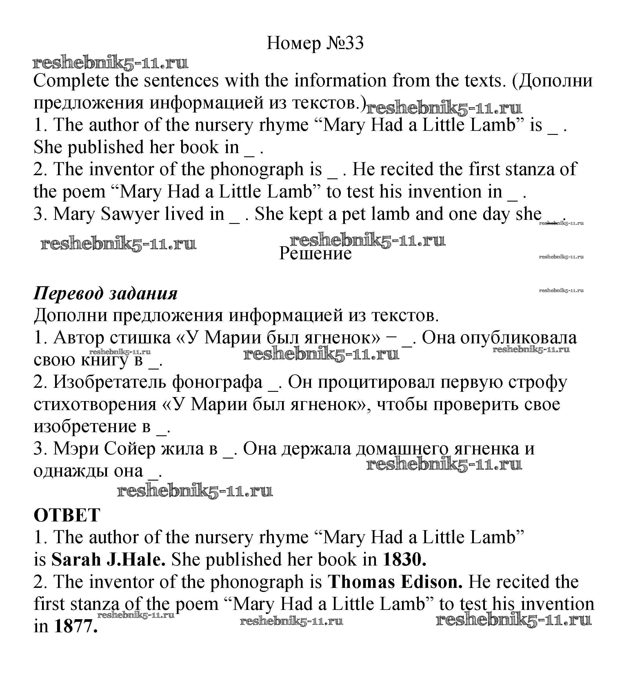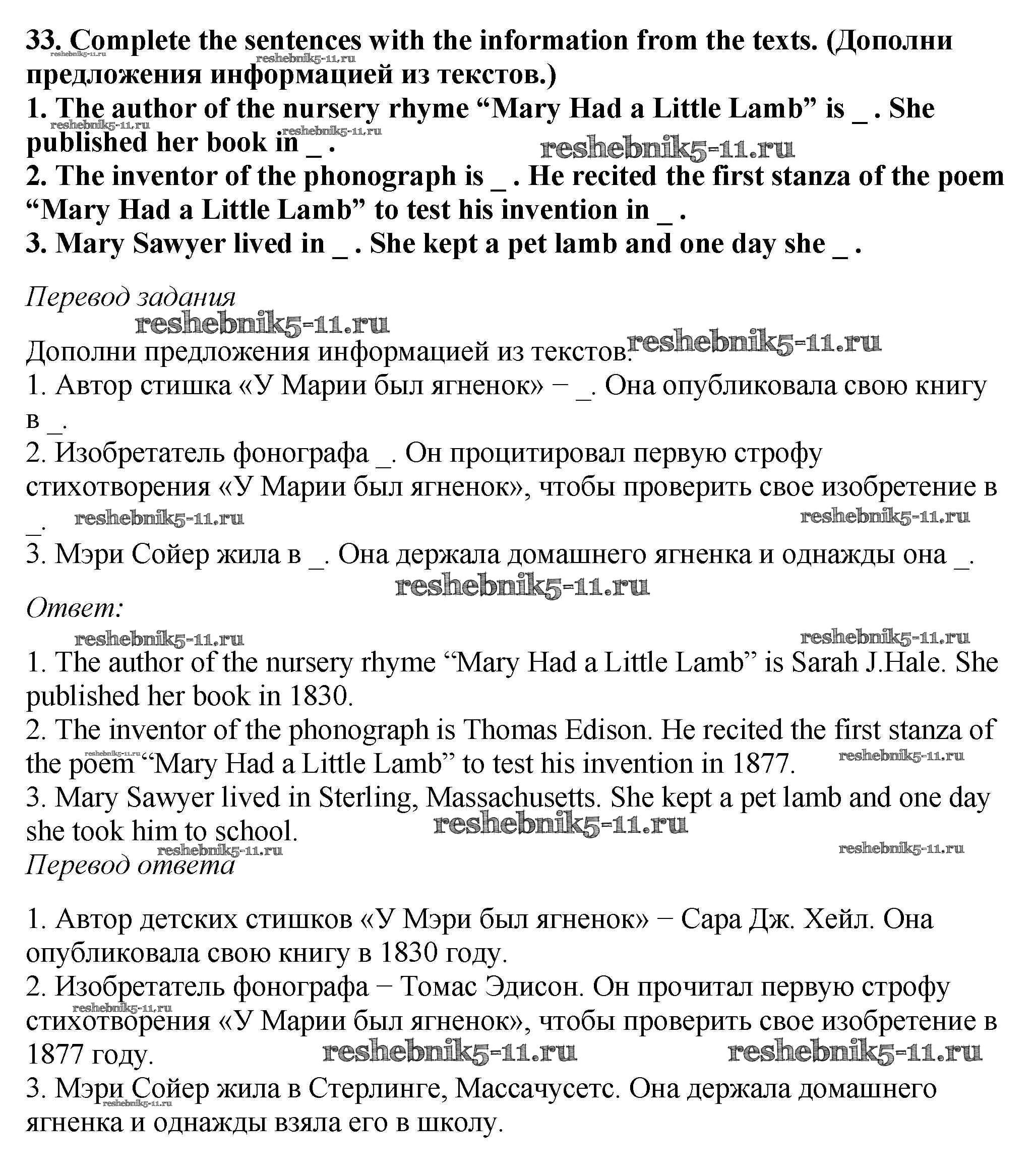 Готовая домашняя работа с ответами по Английскому языку за 5 класс Вербицкая, Эббс, Уорелл Учебник Forward Часть 1, 2 Вентана-граф 2016 ФГОС - Unit 1. Let’s make a magazine 33