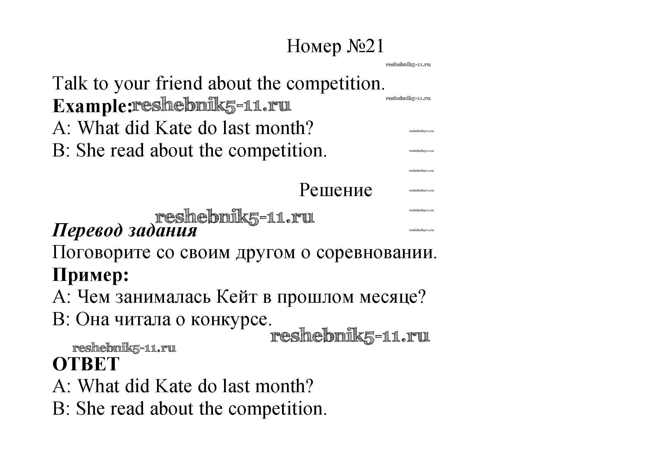 Готовая домашняя работа с ответами по Английскому языку за 5 класс Вербицкая, Эббс, Уорелл Учебник Forward Часть 1, 2 Вентана-граф 2016 ФГОС - Unit 2. The competition 21