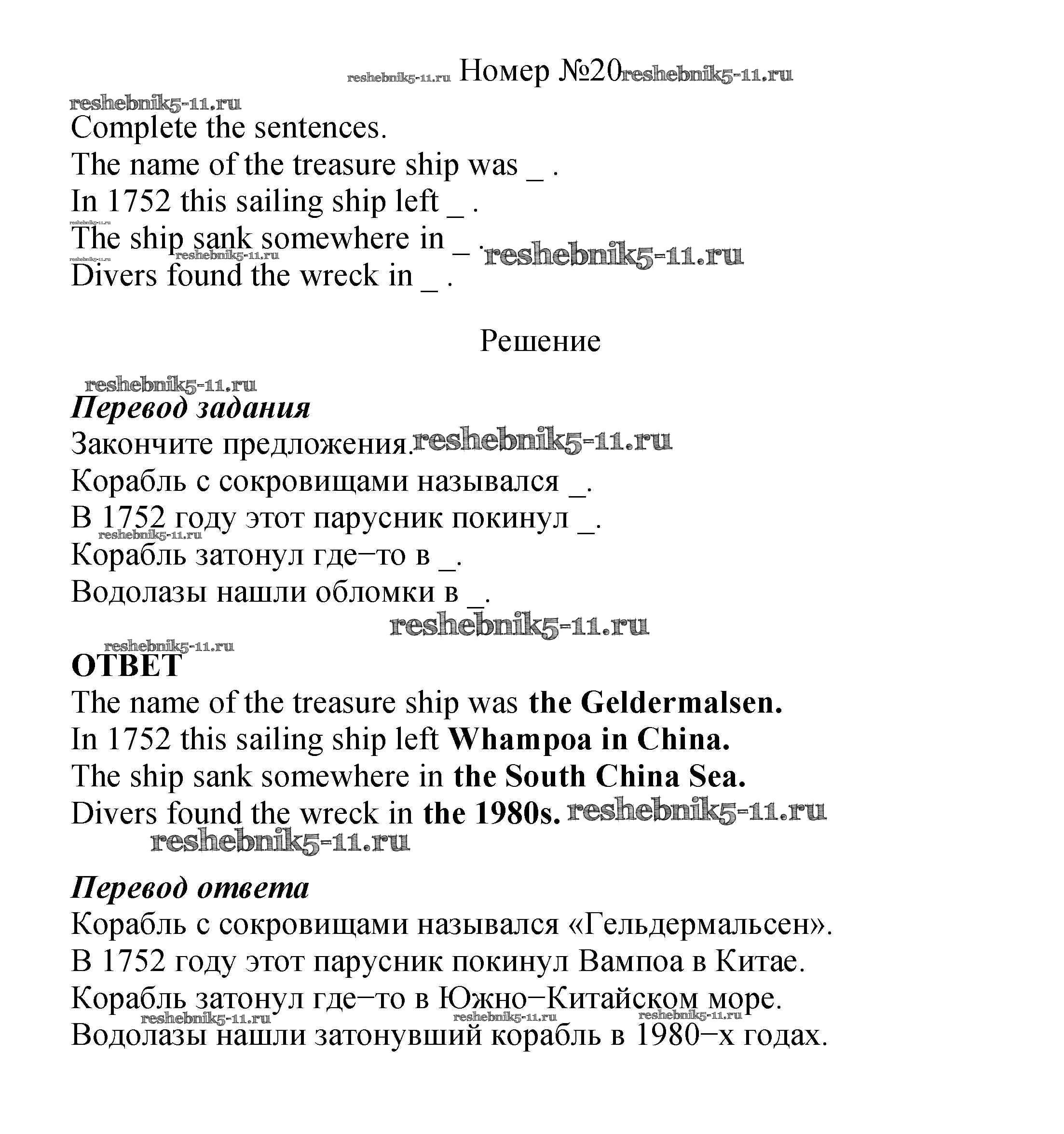 Готовая домашняя работа с ответами по Английскому языку за 5 класс Вербицкая, Эббс, Уорелл Учебник Forward Часть 1, 2 Вентана-граф 2016 ФГОС - Unit 7. Which way do we go? 20