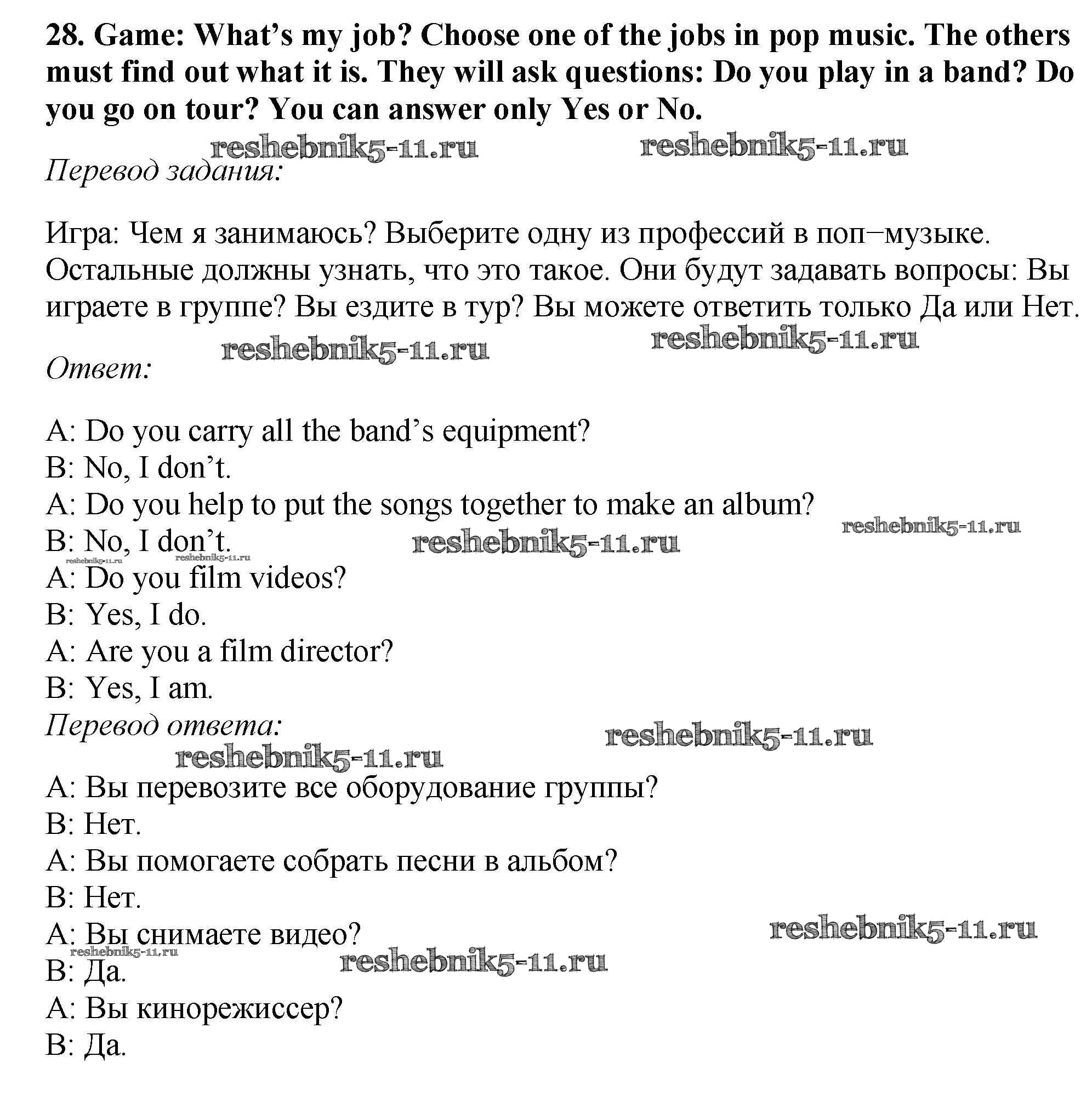 Готовая домашняя работа с ответами по Английскому языку за 5 класс Вербицкая, Эббс, Уорелл Учебник Forward Часть 1, 2 Вентана-граф 2016 ФГОС - Unit 10. Interests and hobbies 28