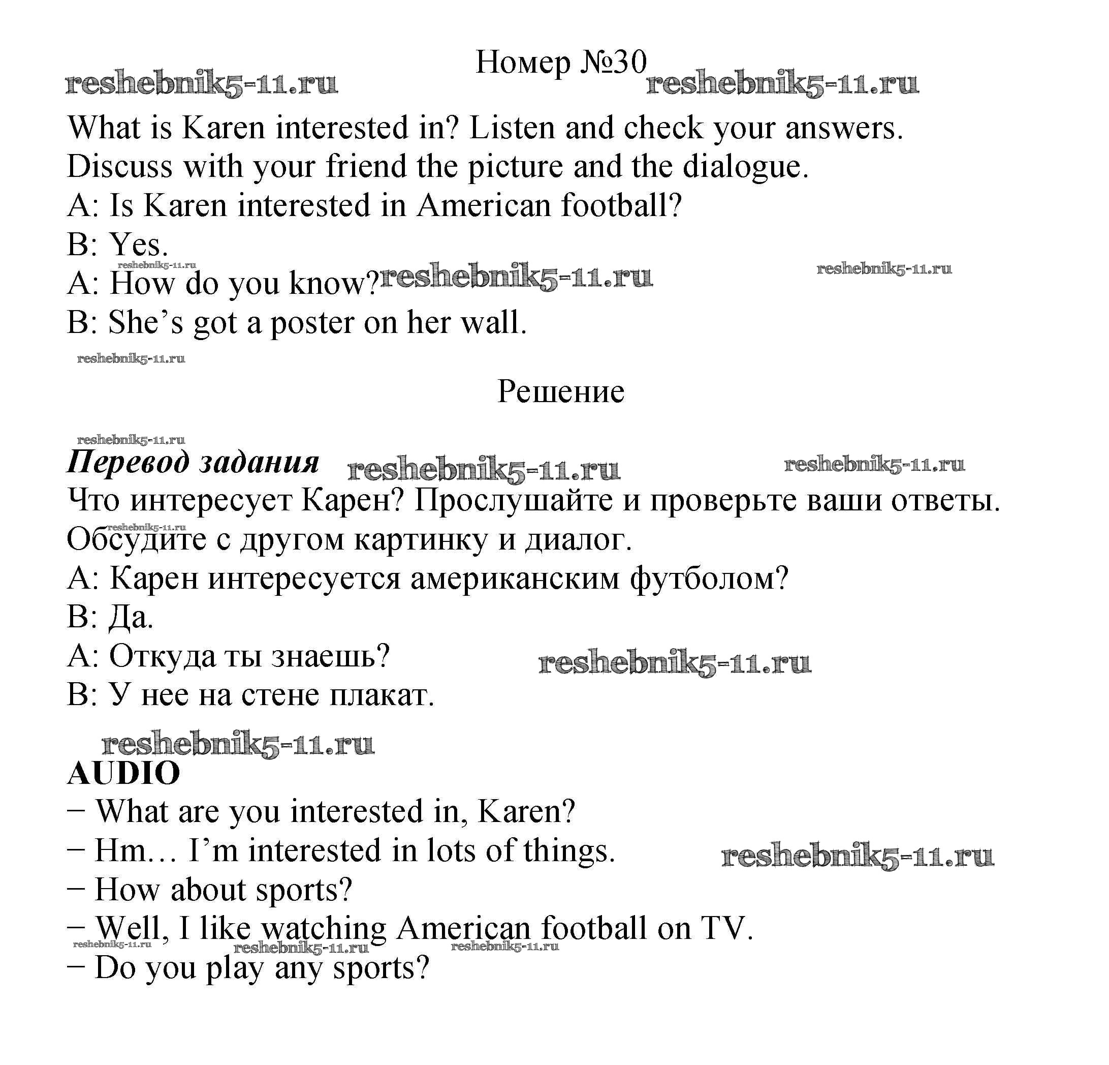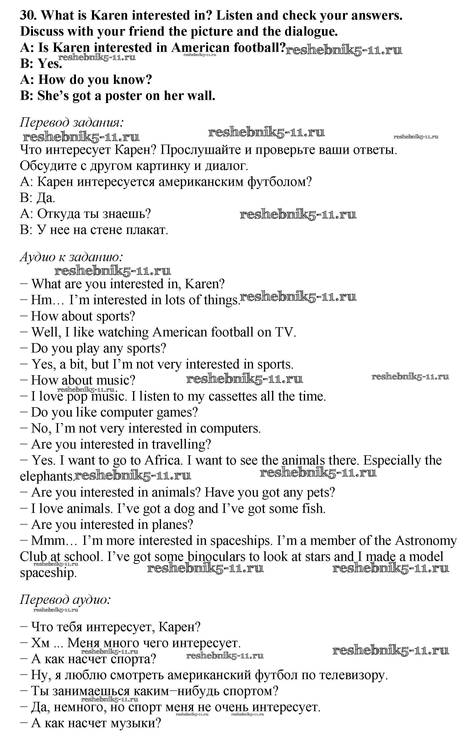 Готовая домашняя работа с ответами по Английскому языку за 5 класс Вербицкая, Эббс, Уорелл Учебник Forward Часть 1, 2 Вентана-граф 2016 ФГОС - Unit 10. Interests and hobbies 30