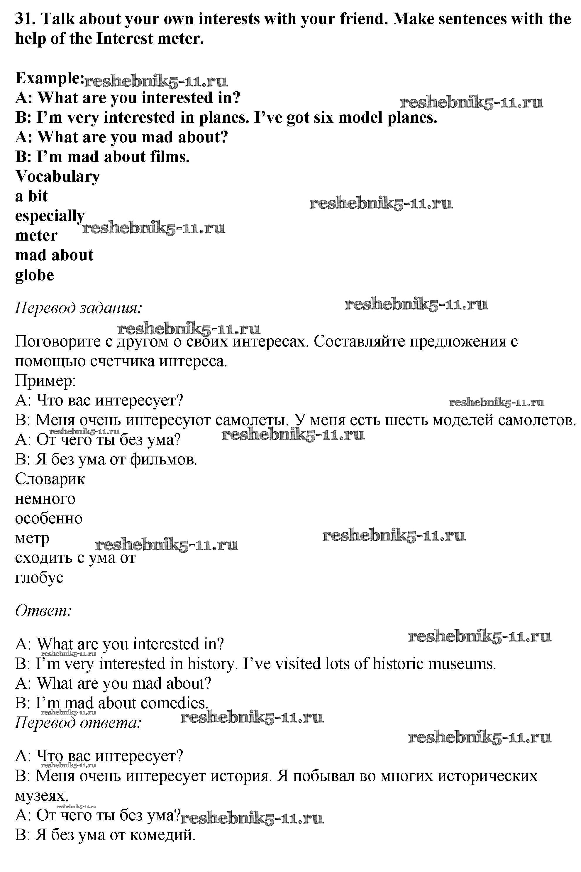 Готовая домашняя работа с ответами по Английскому языку за 5 класс Вербицкая, Эббс, Уорелл Учебник Forward Часть 1, 2 Вентана-граф 2016 ФГОС - Unit 10. Interests and hobbies 31
