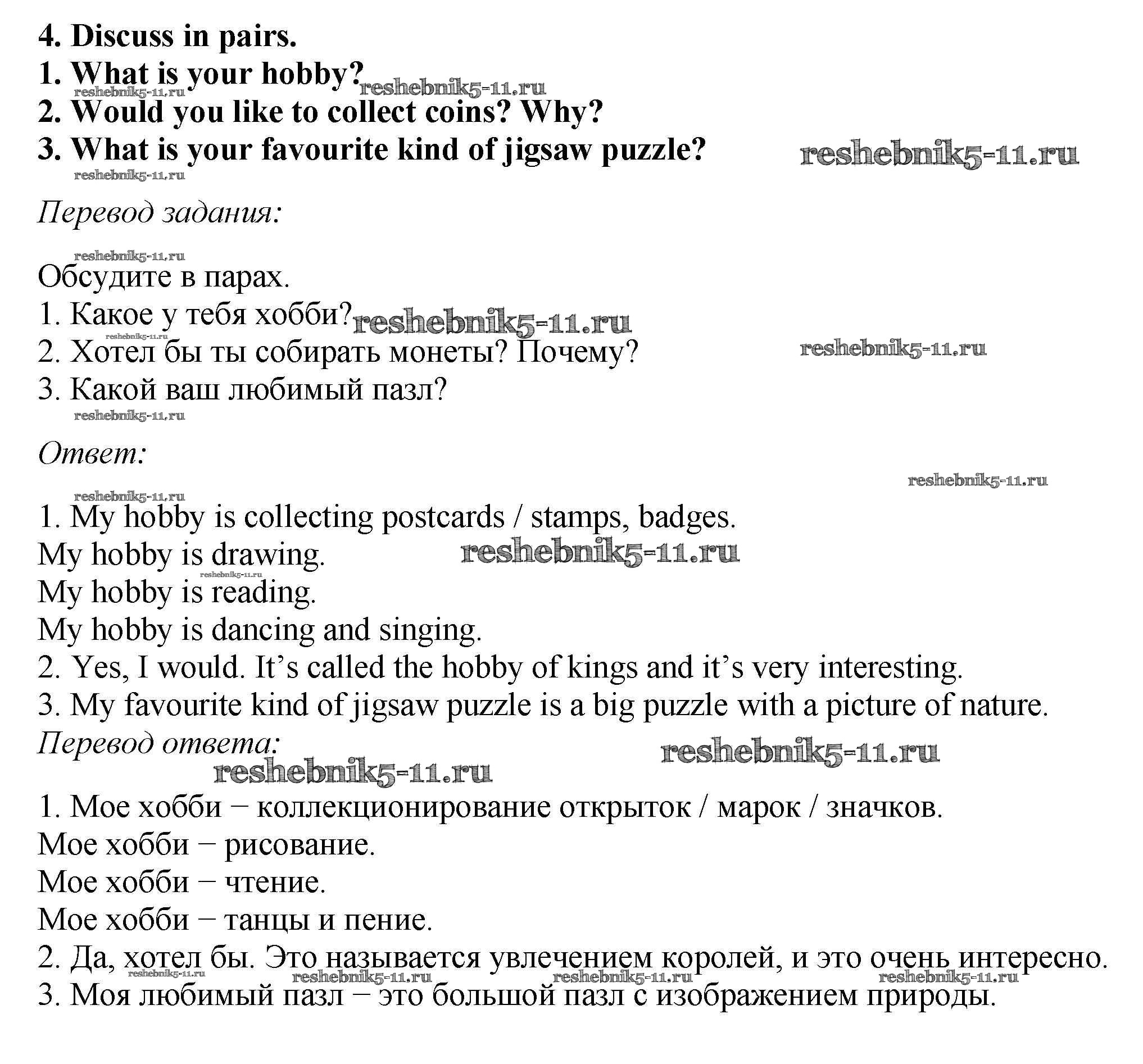 Готовая домашняя работа с ответами по Английскому языку за 5 класс Вербицкая, Эббс, Уорелл Учебник Forward Часть 1, 2 Вентана-граф 2016 ФГОС - Unit 10. Interests and hobbies 4