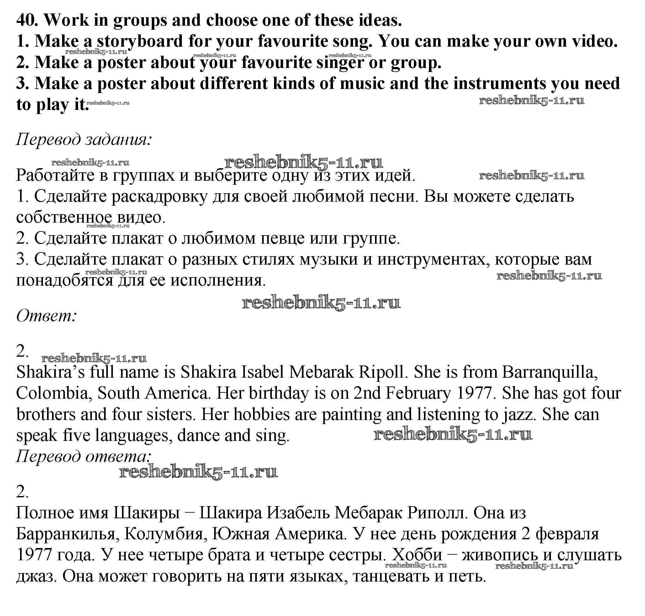 Готовая домашняя работа с ответами по Английскому языку за 5 класс Вербицкая, Эббс, Уорелл Учебник Forward Часть 1, 2 Вентана-граф 2016 ФГОС - Unit 10. Interests and hobbies 40