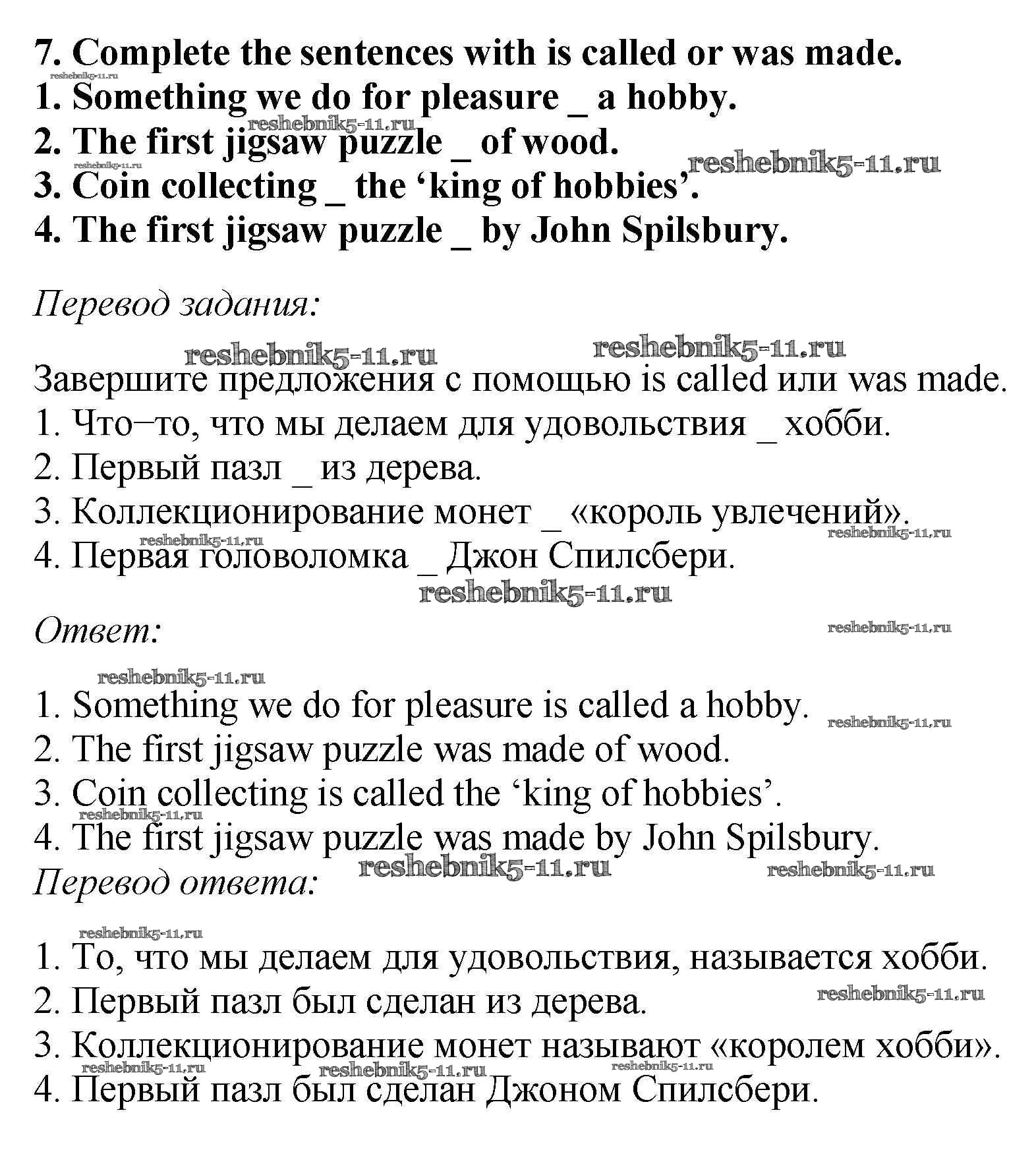 Готовая домашняя работа с ответами по Английскому языку за 5 класс Вербицкая, Эббс, Уорелл Учебник Forward Часть 1, 2 Вентана-граф 2016 ФГОС - Unit 10. Interests and hobbies 7