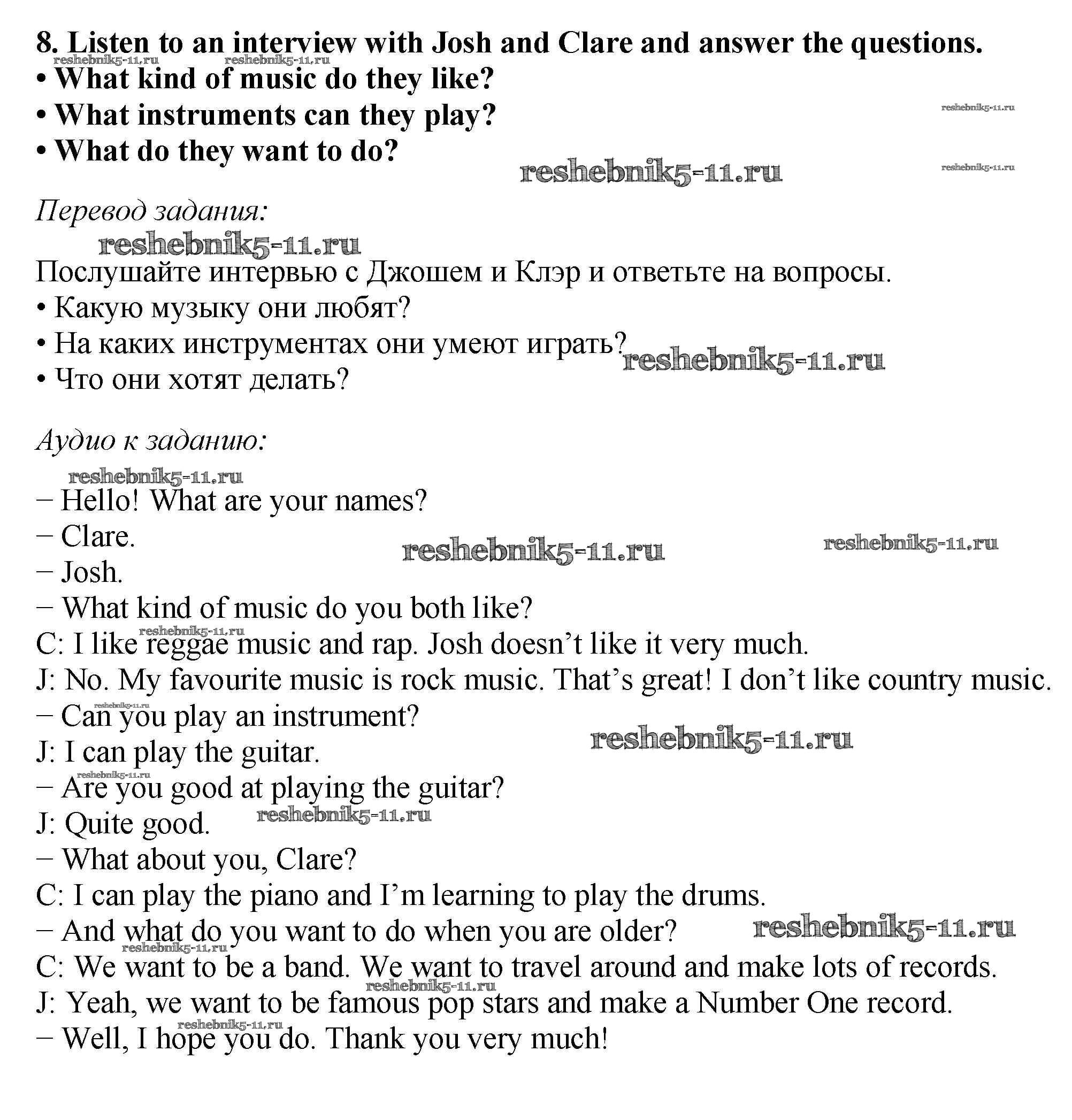 Готовая домашняя работа с ответами по Английскому языку за 5 класс Вербицкая, Эббс, Уорелл Учебник Forward Часть 1, 2 Вентана-граф 2016 ФГОС - Unit 10. Interests and hobbies 8