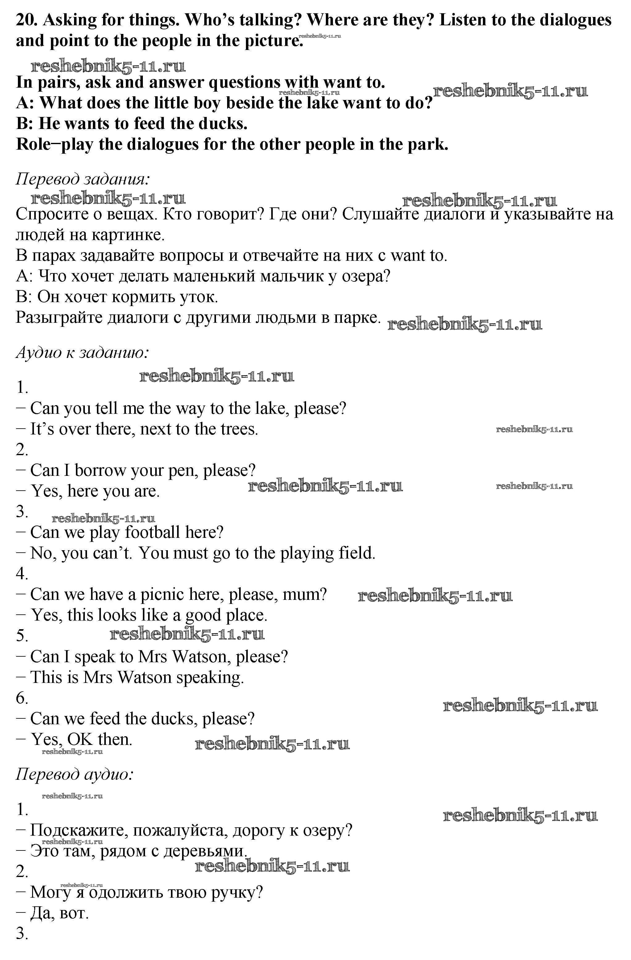 Готовая домашняя работа с ответами по Английскому языку за 5 класс Вербицкая, Эббс, Уорелл Учебник Forward Часть 1, 2 Вентана-граф 2016 ФГОС - Unit 11. Can we speak to Rik Morell, please? 20