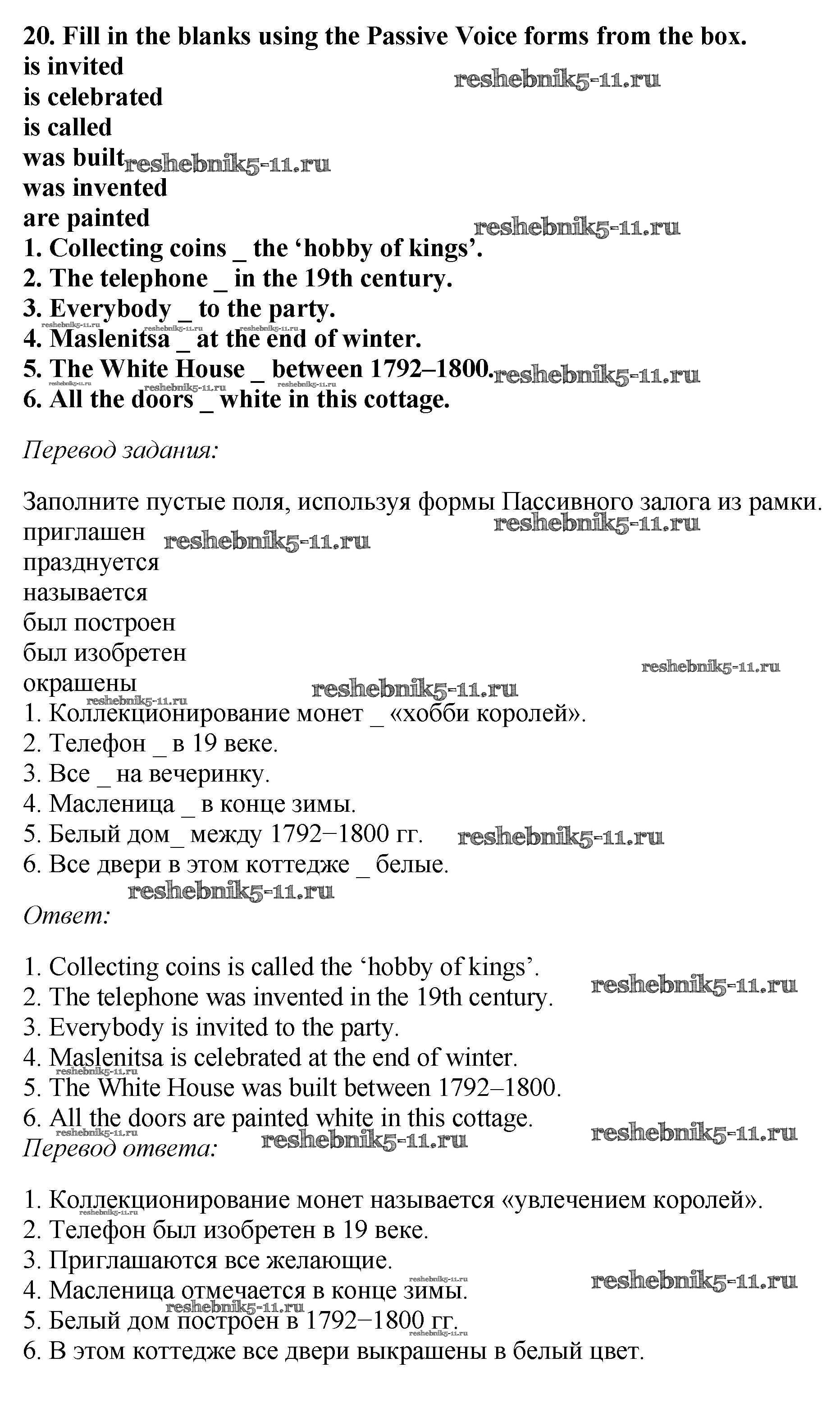 Готовая домашняя работа с ответами по Английскому языку за 5 класс Вербицкая, Эббс, Уорелл Учебник Forward Часть 1, 2 Вентана-граф 2016 ФГОС - Unit 12. A glimpse of history 20