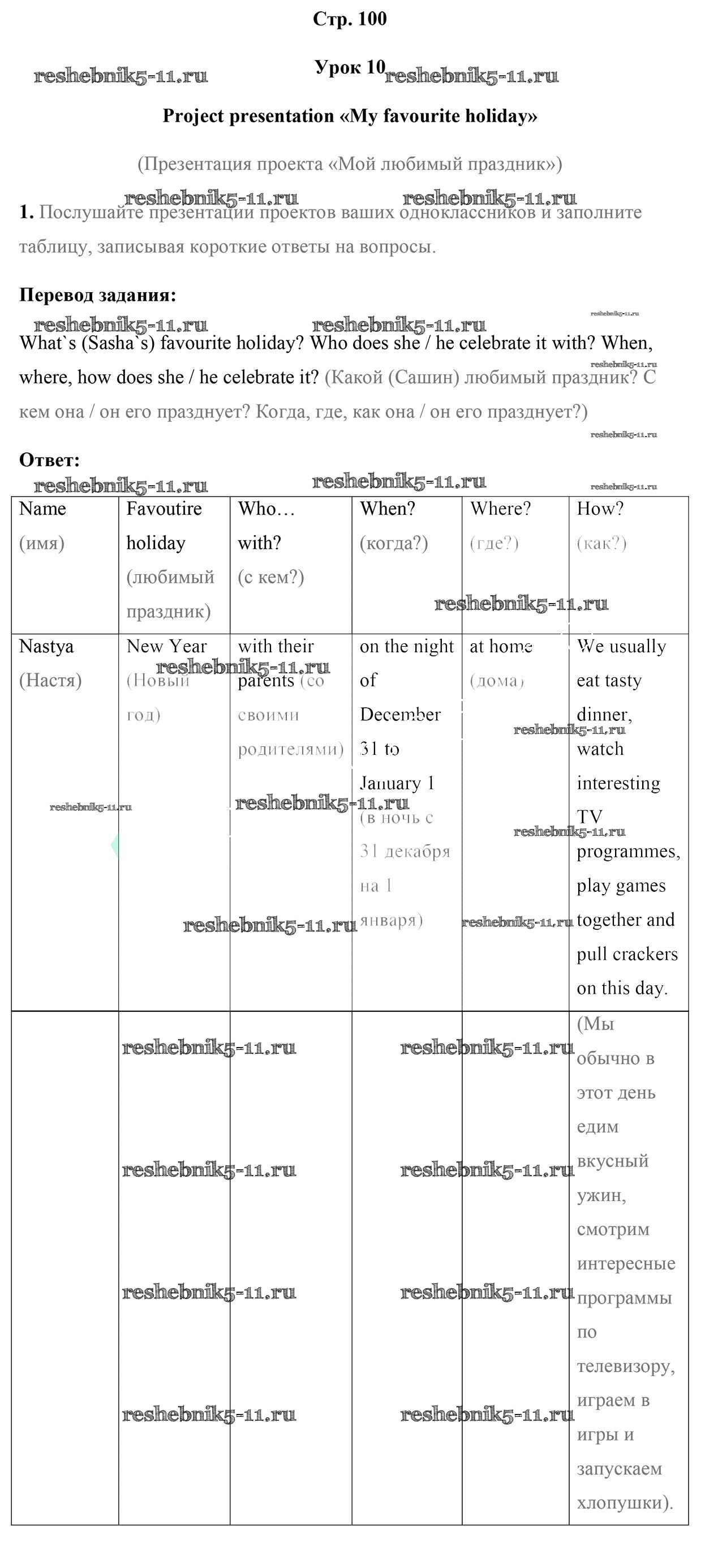 Готовая домашняя работа с ответами по Английскому языку за 5 класс Лапицкая, Севрюкова, Калишевич, Седунова Рабочая тетрадь Часть 1, 2 Аверсэв 2016 ФГОС - Часть 1. Страницы 100