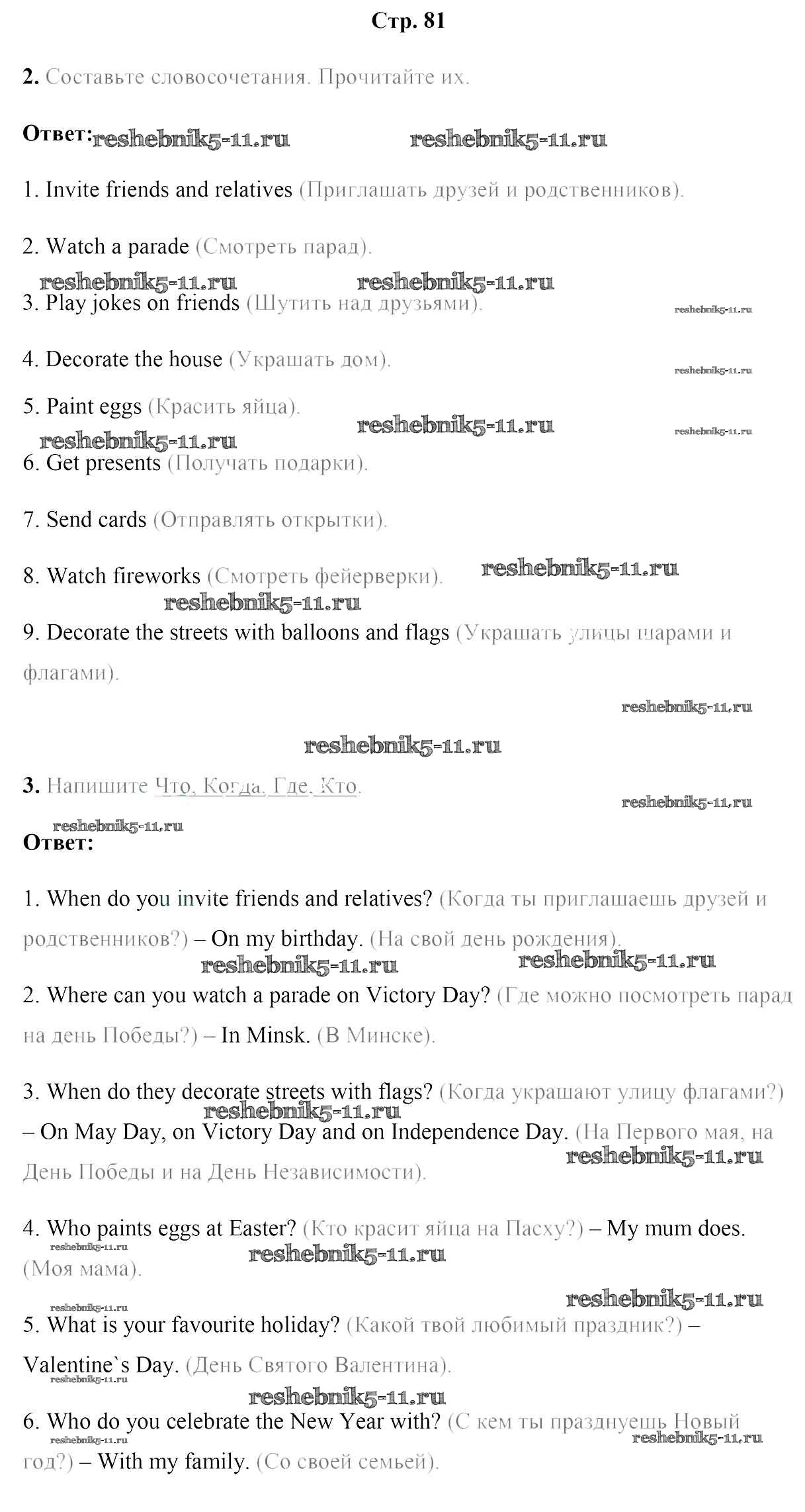 Готовая домашняя работа с ответами по Английскому языку за 5 класс Лапицкая, Севрюкова, Калишевич, Седунова Рабочая тетрадь Часть 1, 2 Аверсэв 2016 ФГОС - Часть 1. Страницы 81