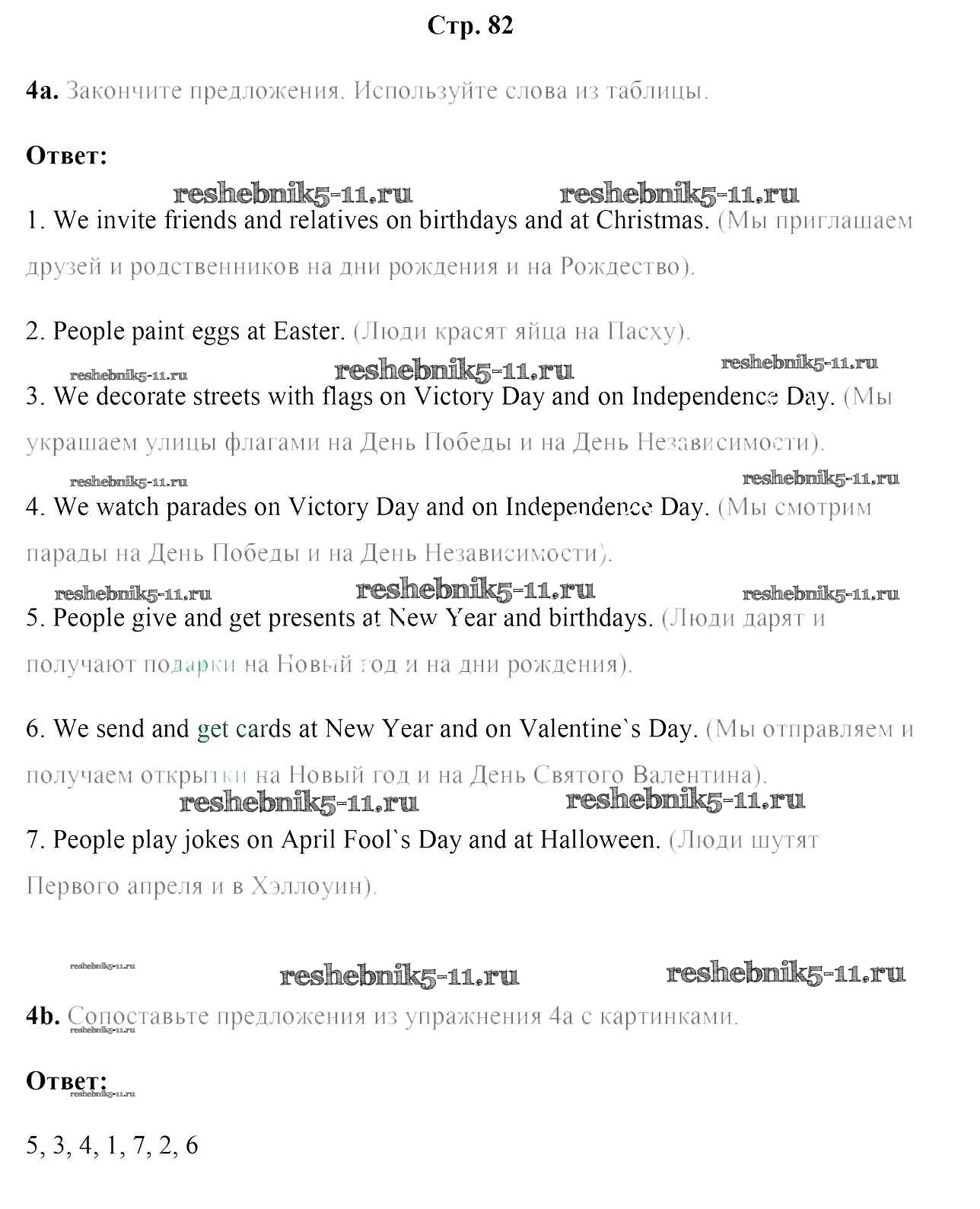 Готовая домашняя работа с ответами по Английскому языку за 5 класс Лапицкая, Севрюкова, Калишевич, Седунова Рабочая тетрадь Часть 1, 2 Аверсэв 2016 ФГОС - Часть 1. Страницы 82