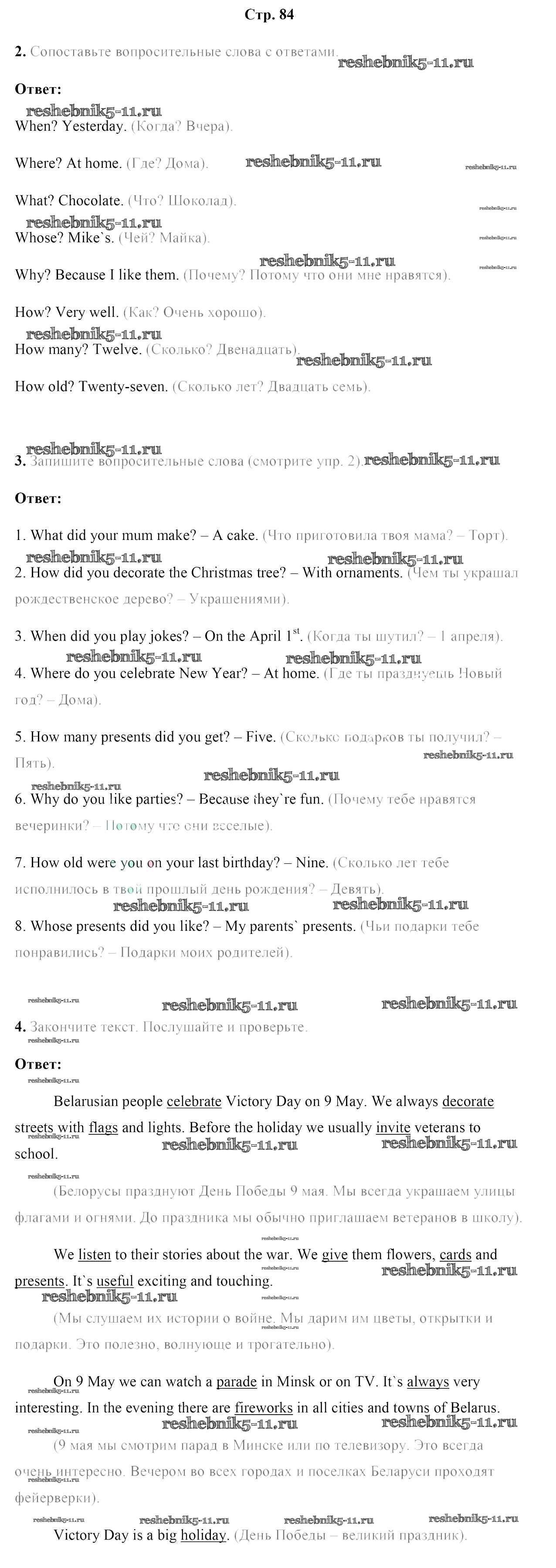 Готовая домашняя работа с ответами по Английскому языку за 5 класс Лапицкая, Севрюкова, Калишевич, Седунова Рабочая тетрадь Часть 1, 2 Аверсэв 2016 ФГОС - Часть 1. Страницы 84