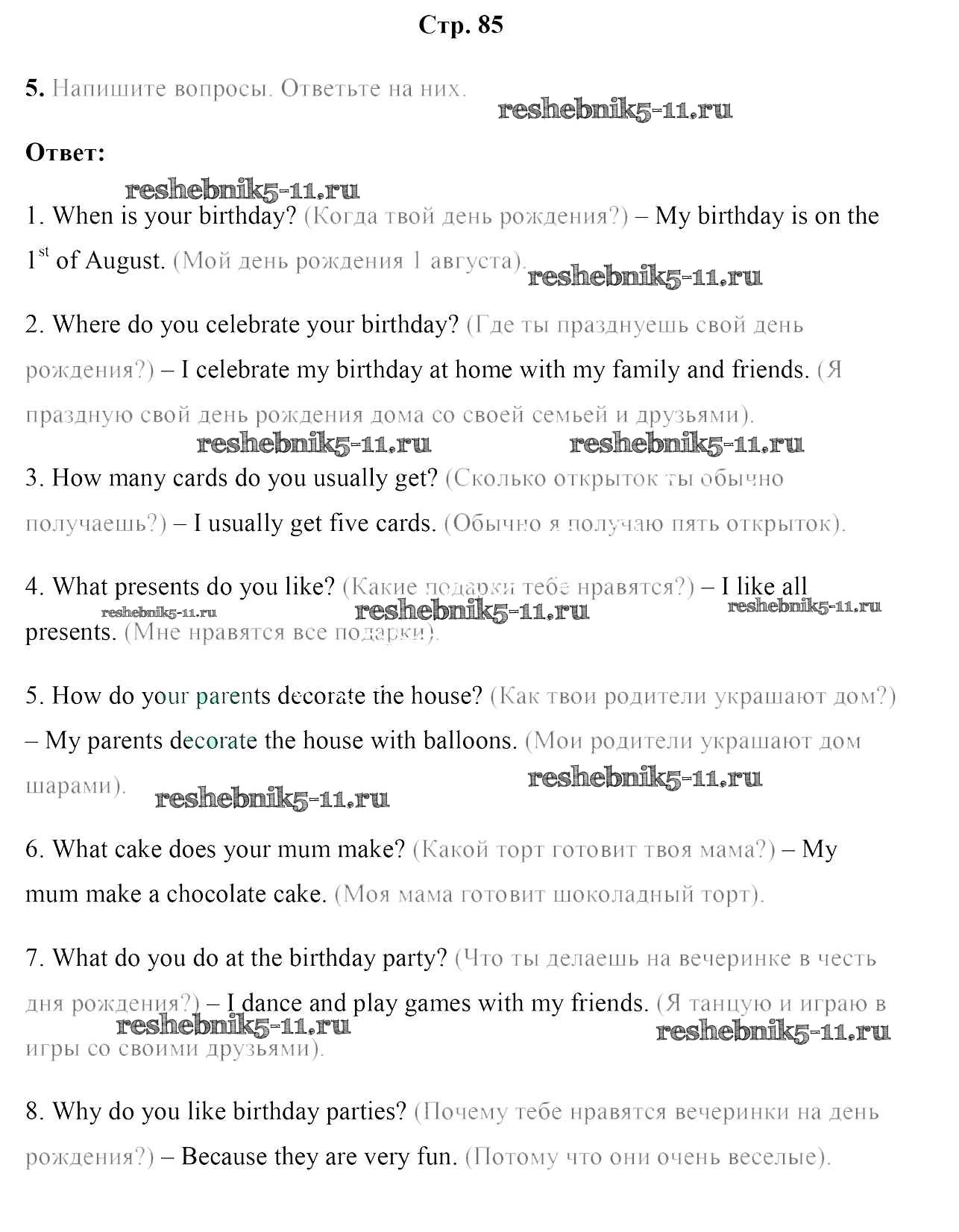 Готовая домашняя работа с ответами по Английскому языку за 5 класс Лапицкая, Севрюкова, Калишевич, Седунова Рабочая тетрадь Часть 1, 2 Аверсэв 2016 ФГОС - Часть 1. Страницы 85