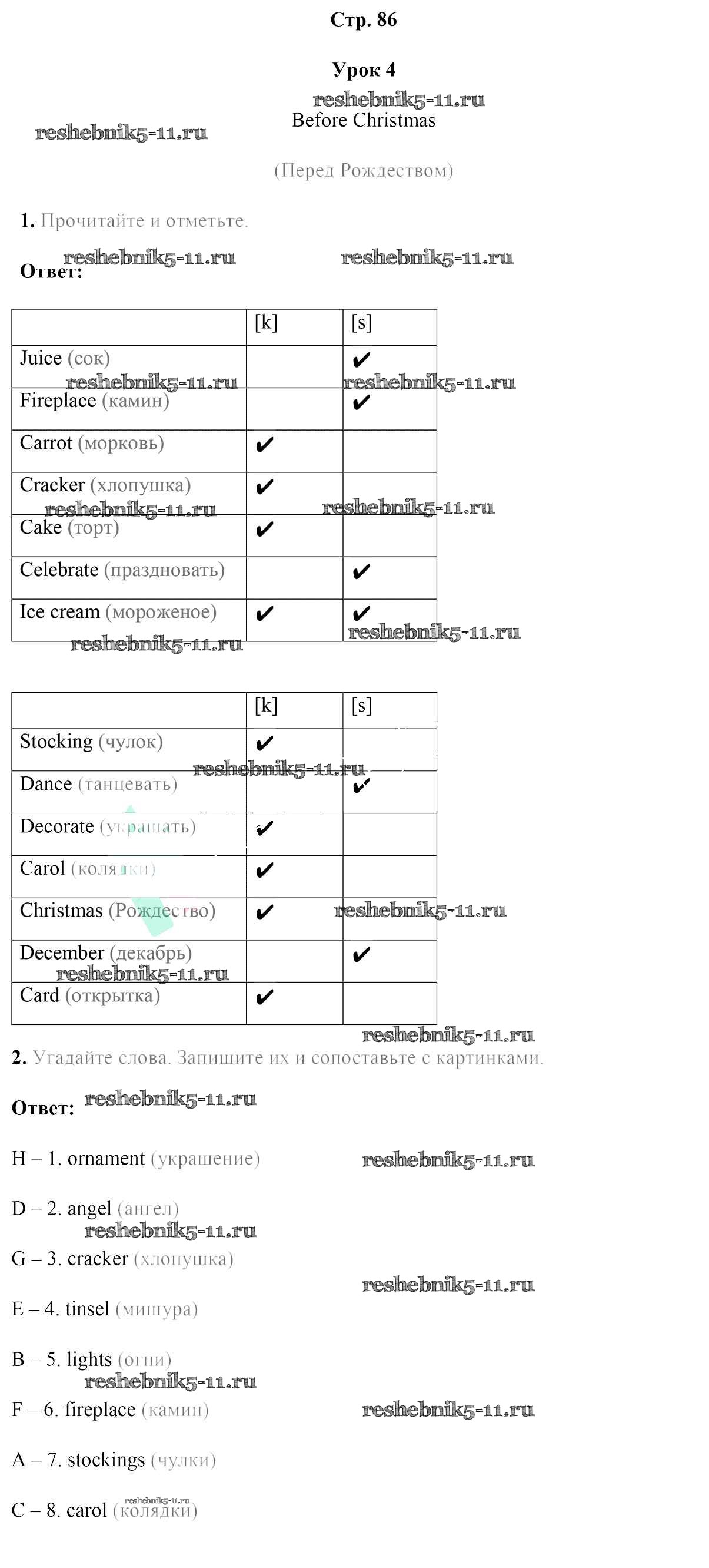 Готовая домашняя работа с ответами по Английскому языку за 5 класс Лапицкая, Севрюкова, Калишевич, Седунова Рабочая тетрадь Часть 1, 2 Аверсэв 2016 ФГОС - Часть 1. Страницы 86