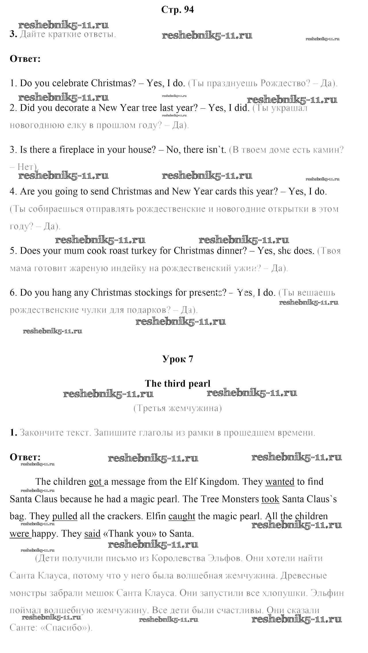 Готовая домашняя работа с ответами по Английскому языку за 5 класс Лапицкая, Севрюкова, Калишевич, Седунова Рабочая тетрадь Часть 1, 2 Аверсэв 2016 ФГОС - Часть 1. Страницы 94