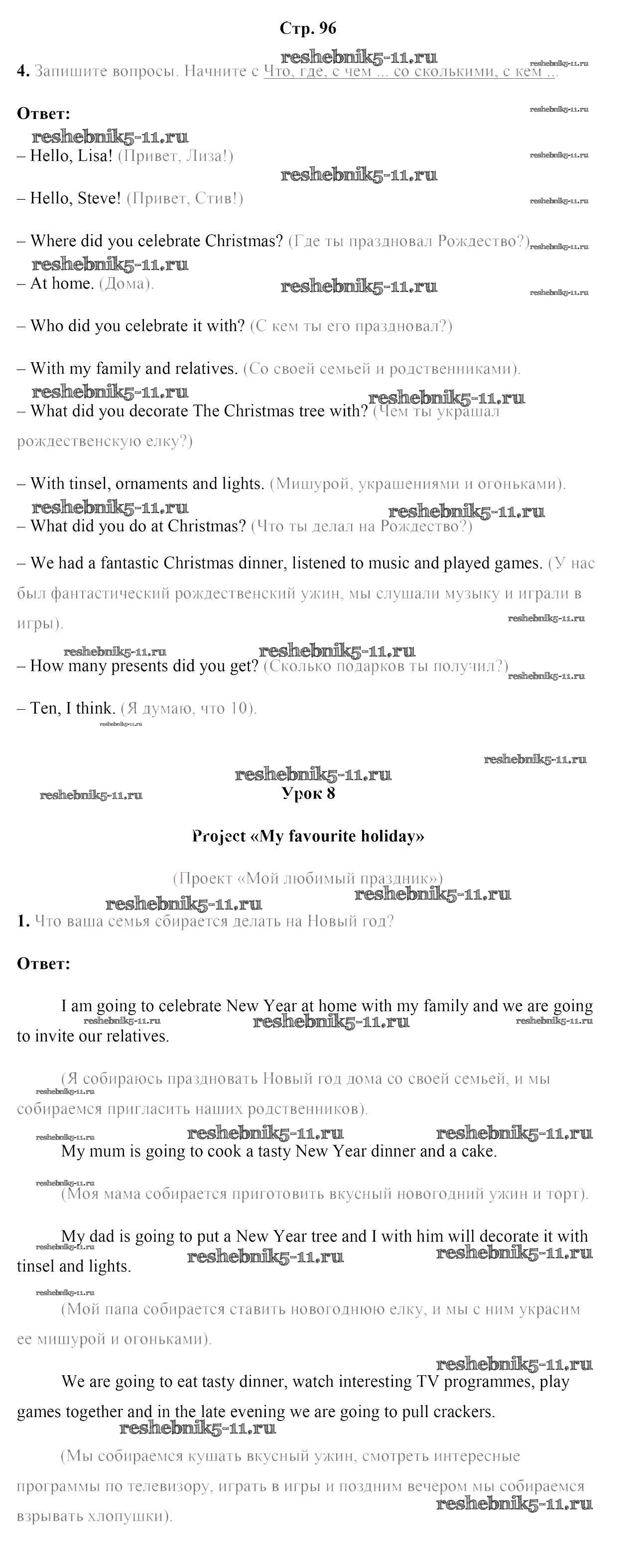 Готовая домашняя работа с ответами по Английскому языку за 5 класс Лапицкая, Севрюкова, Калишевич, Седунова Рабочая тетрадь Часть 1, 2 Аверсэв 2016 ФГОС - Часть 1. Страницы 96