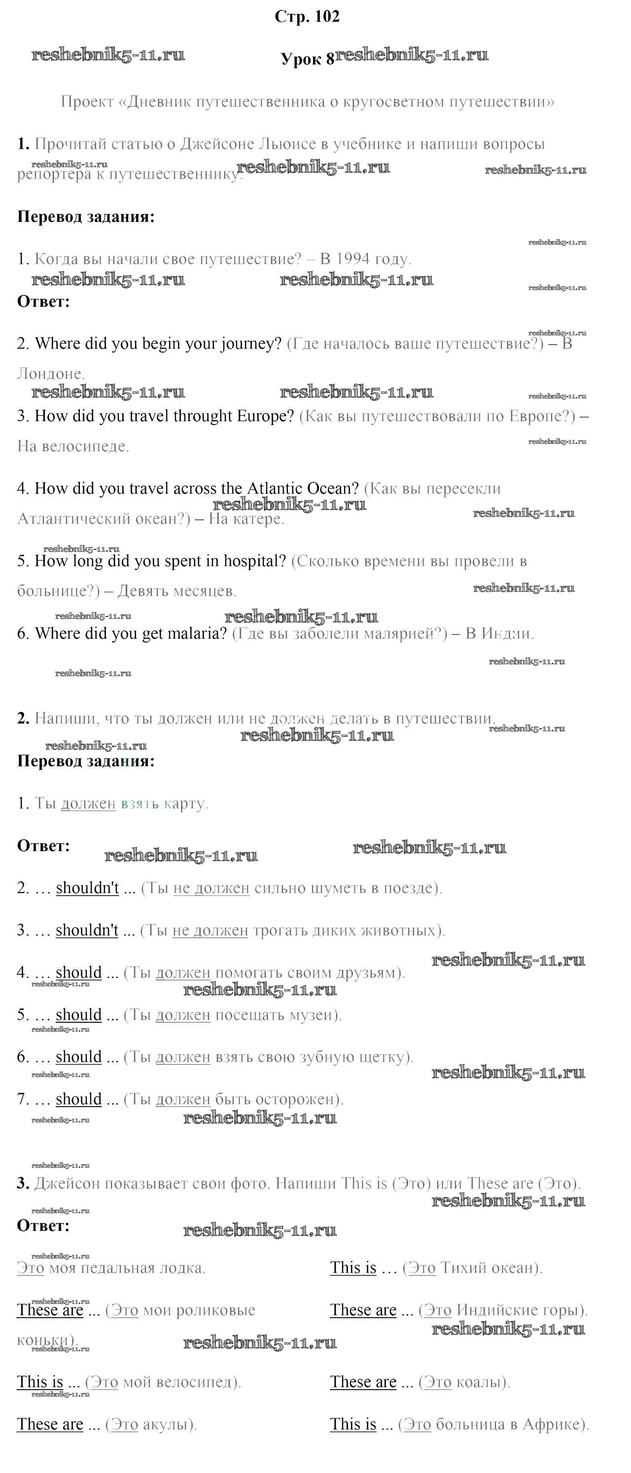 Готовая домашняя работа с ответами по Английскому языку за 5 класс Лапицкая, Севрюкова, Калишевич, Седунова Рабочая тетрадь Часть 1, 2 Аверсэв 2016 ФГОС - Часть 2. Страницы 102