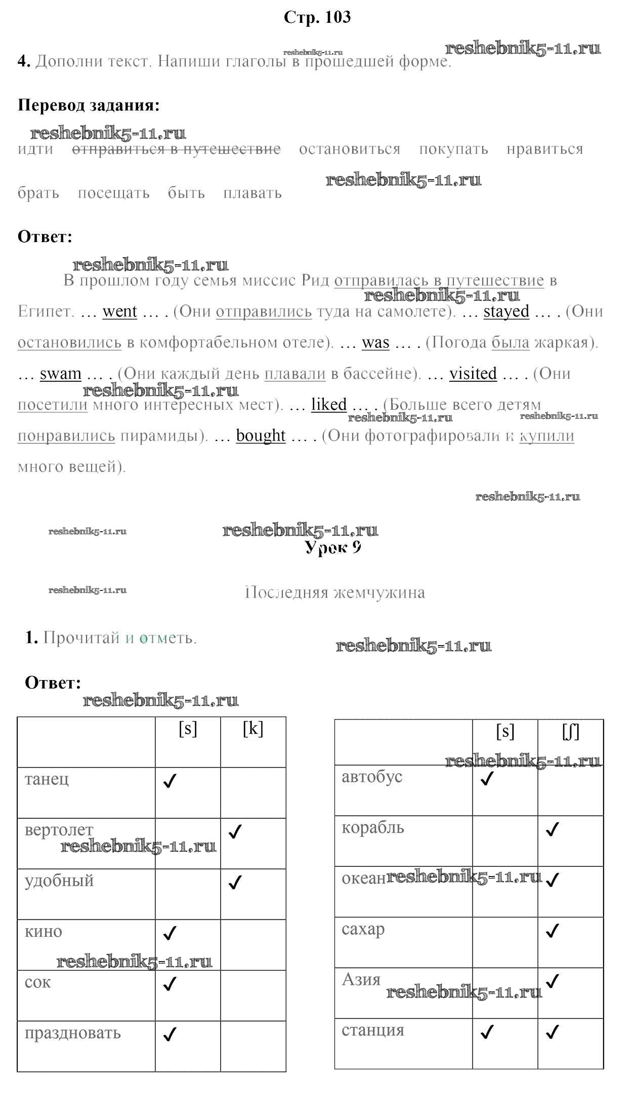 Готовая домашняя работа с ответами по Английскому языку за 5 класс Лапицкая, Севрюкова, Калишевич, Седунова Рабочая тетрадь Часть 1, 2 Аверсэв 2016 ФГОС - Часть 2. Страницы 103
