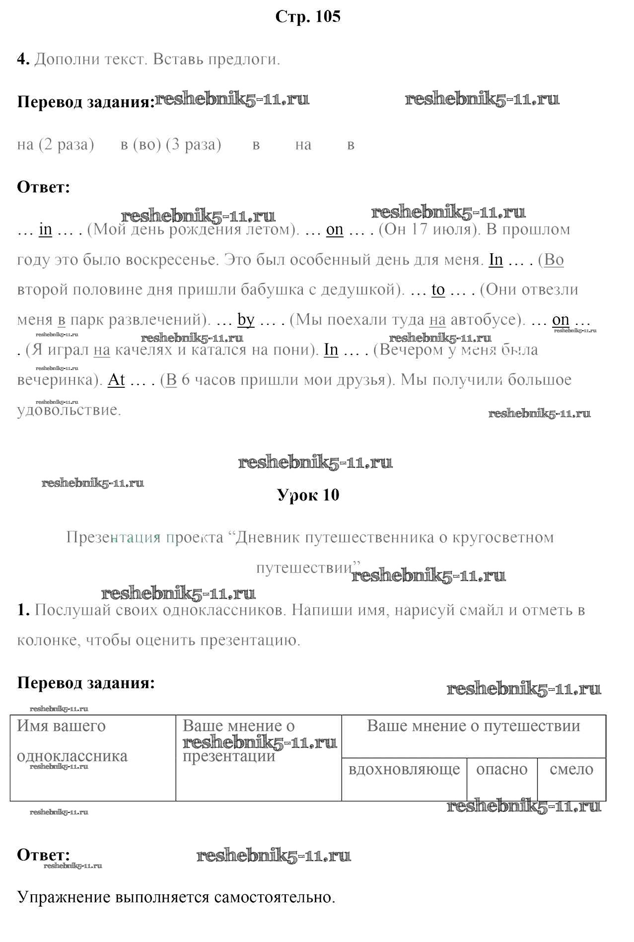 Готовая домашняя работа с ответами по Английскому языку за 5 класс Лапицкая, Севрюкова, Калишевич, Седунова Рабочая тетрадь Часть 1, 2 Аверсэв 2016 ФГОС - Часть 2. Страницы 105