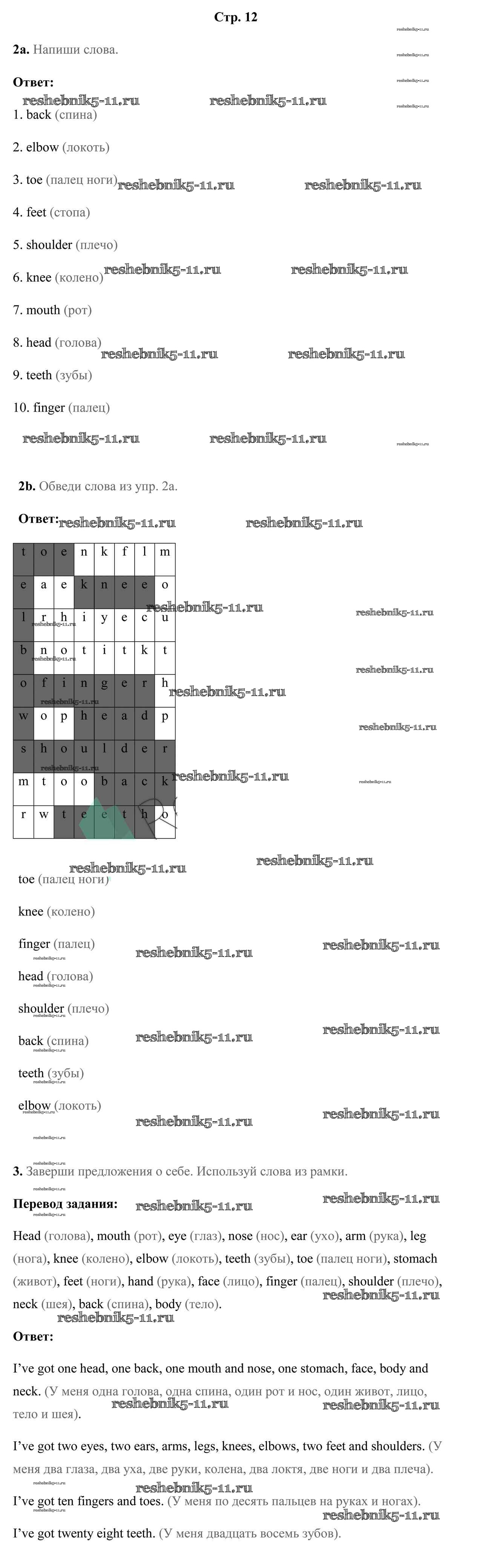 Готовая домашняя работа с ответами по Английскому языку за 5 класс Лапицкая, Севрюкова, Калишевич, Седунова Рабочая тетрадь Часть 1, 2 Аверсэв 2016 ФГОС - Часть 2. Страницы 12